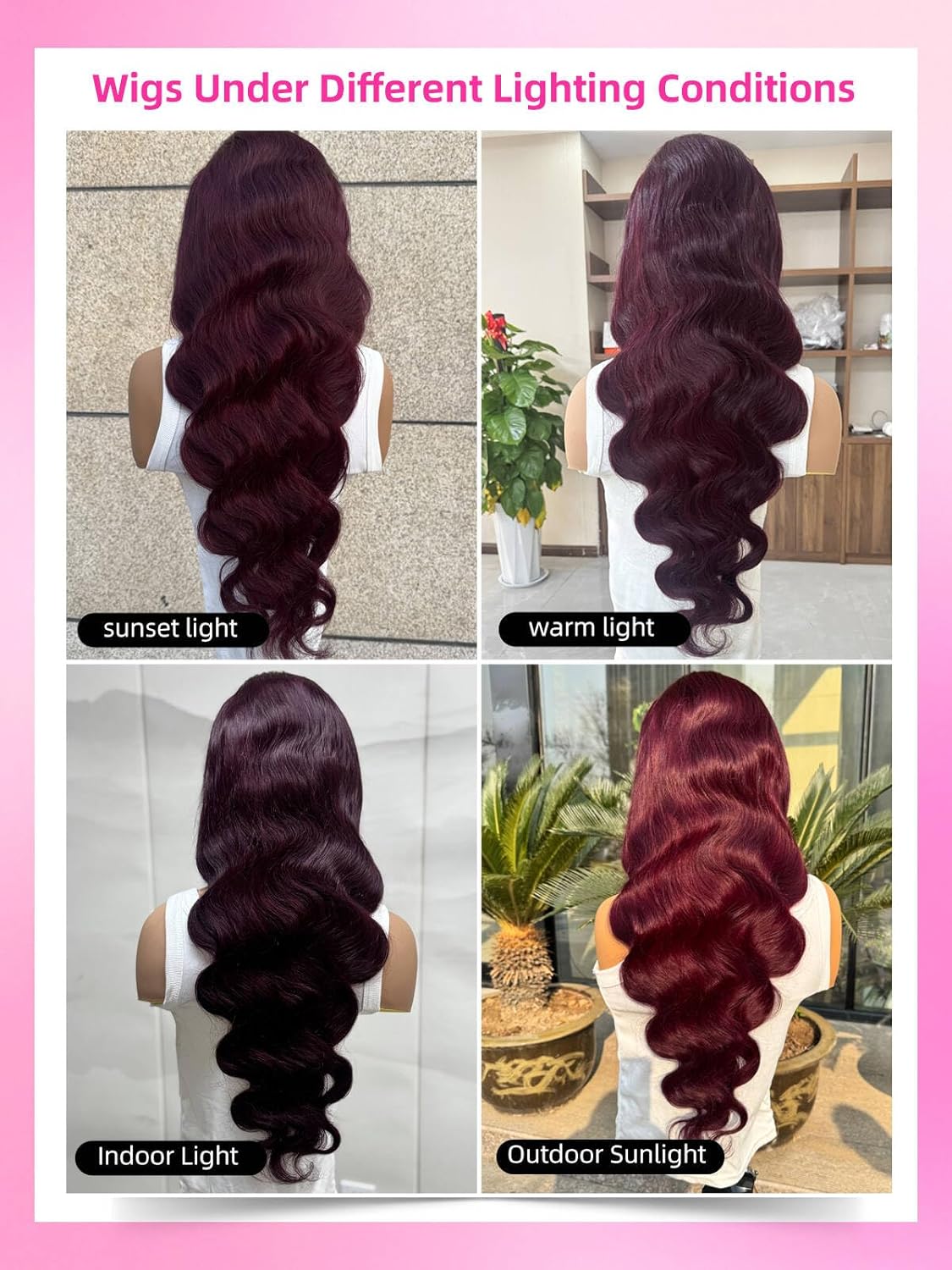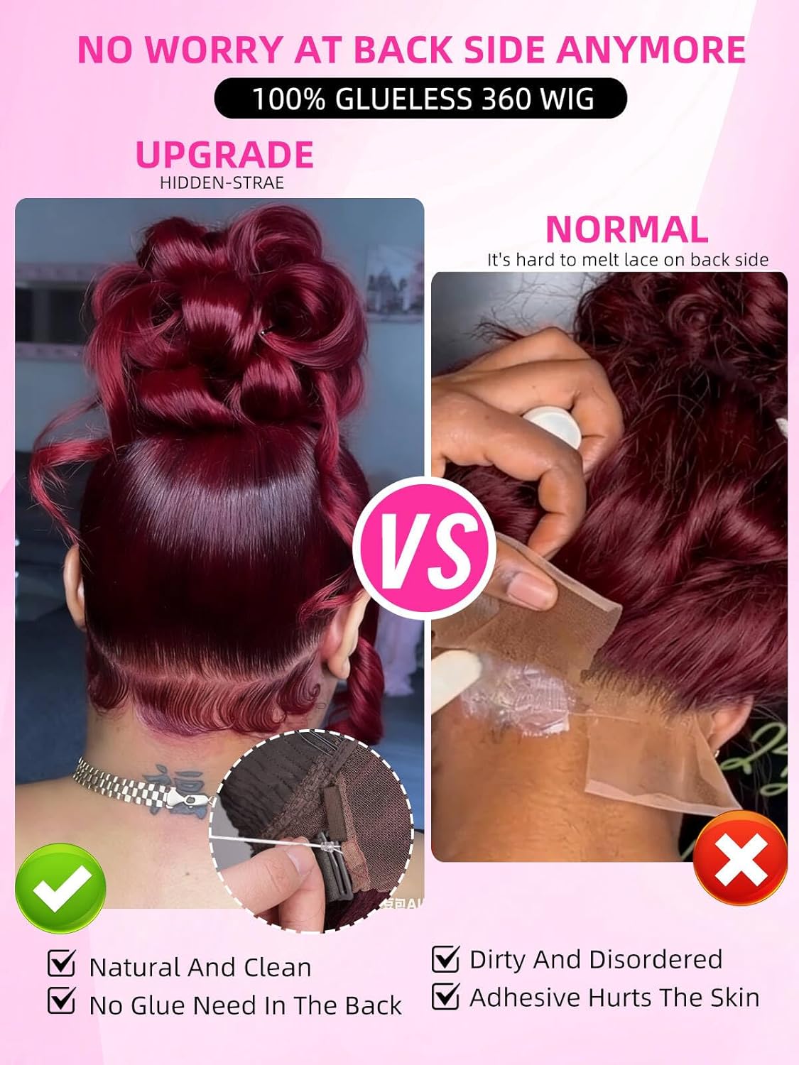 | Color | 360 Lace Front With invisiTight Drawstring ▏Body Wave Wig ▏ Black Cherry Color |