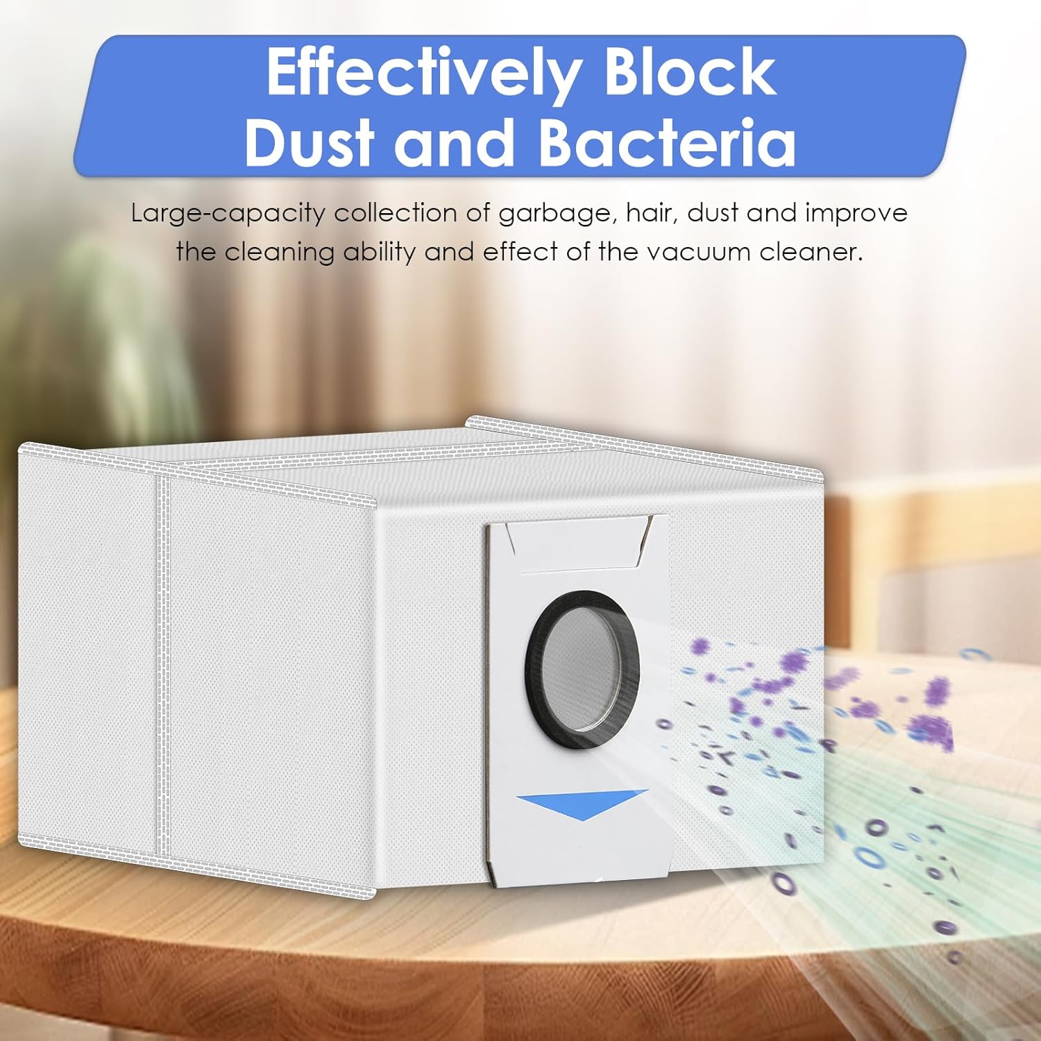 | Included Components | Accessories kit: 22 parts included: 1 roller brush, 4 side brushes, 7 dust bags, 5 HEPA filters, 5 mop pads/ Perfectly compatible with ECOVACS DEEBOT T20 Omni, T20e Omni, T20 Max, T20 Pro robotic vacuum cleaner/ Environmentally friendly |