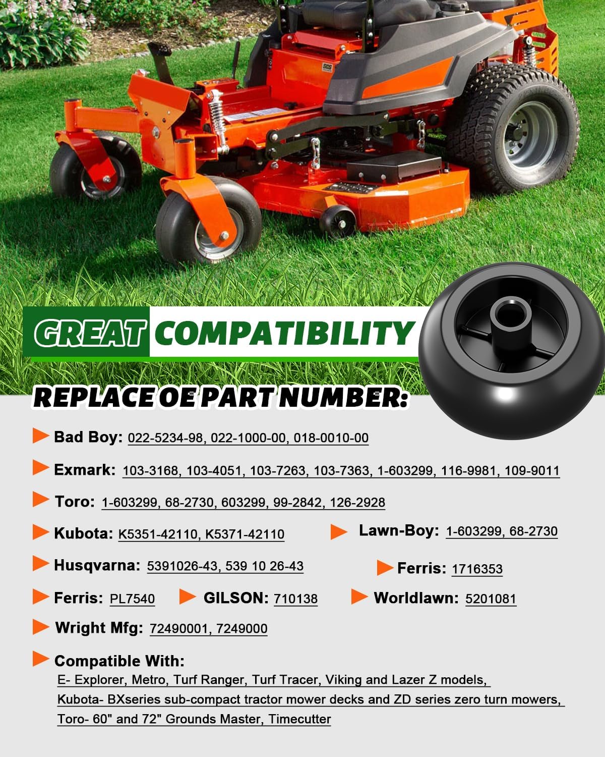 | Included Components | 6PCS Lawn Mower Deck Wheels Kit |