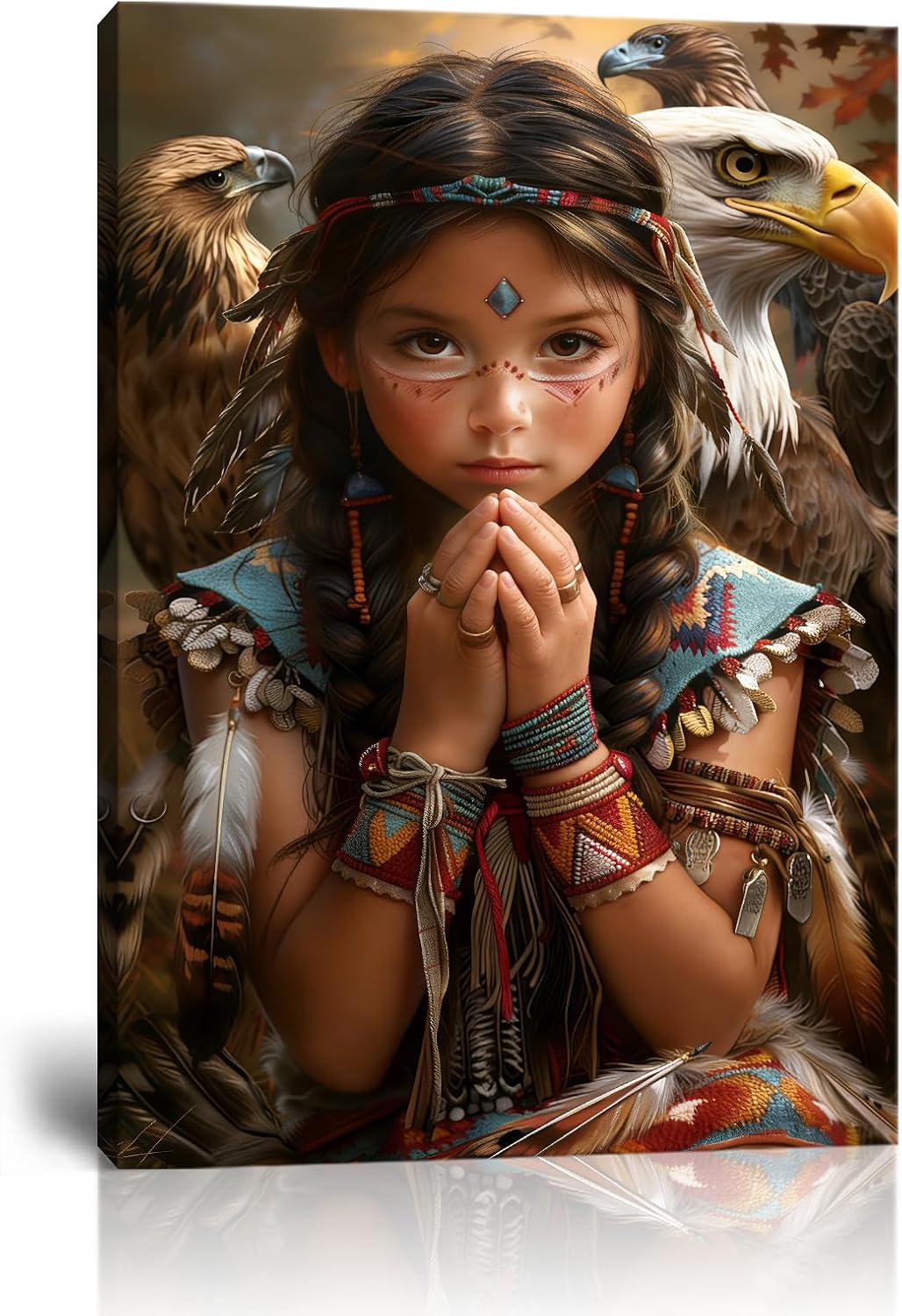 Gift Idea:1. For wedding, anniversary, thanksgiving, christmas, mother's Day, father's Day, valentine, birthday and others. 2. Framed native american wall art is gift idea for your grandma, mom, dad, wife,husband, sister, brother, Child and other beloved ones with surprising designs.Feature:1. HD print native american canvas wall art decorative painting. Never lose color and waterproof. The side margins are also printed to create a particularly decorative effect.2. Each panel has an environmentally friendly frame and black hook that can be hung directly to your wall.3.Intact packaging, Make sure you receive the intact native american picture.4. Stable logistics guarantee, let you receive your native american paintings on time.5. A great native american canvas wall art painting for home decor, bedroom, living room, study, hallway, kitchen, office, hotel, cafe, hall, dining room, office, bathroom, game room, bar, spa, lounge wall decor etc. Suitable for hanging indoors and outdoors.6. Make sure you need the size, we can customize the size and picture you need for you.