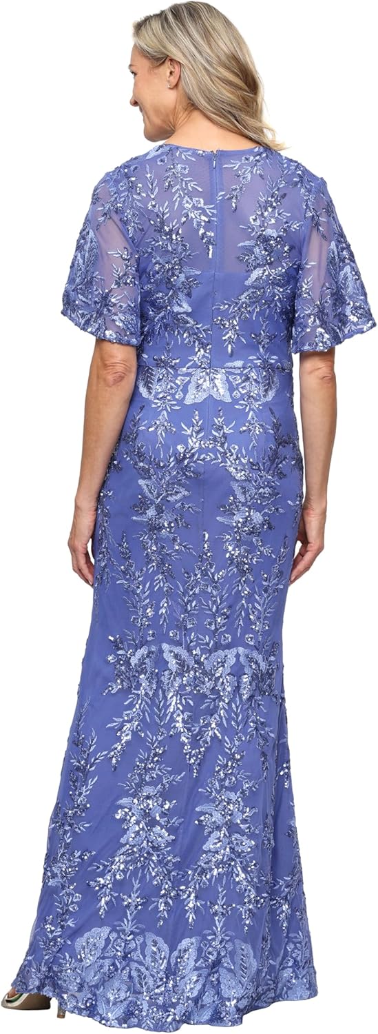 | Style Name | Long Embroidered Mother of the Bride Dress With Sweetheart Neckline and Flutter Sleeves |