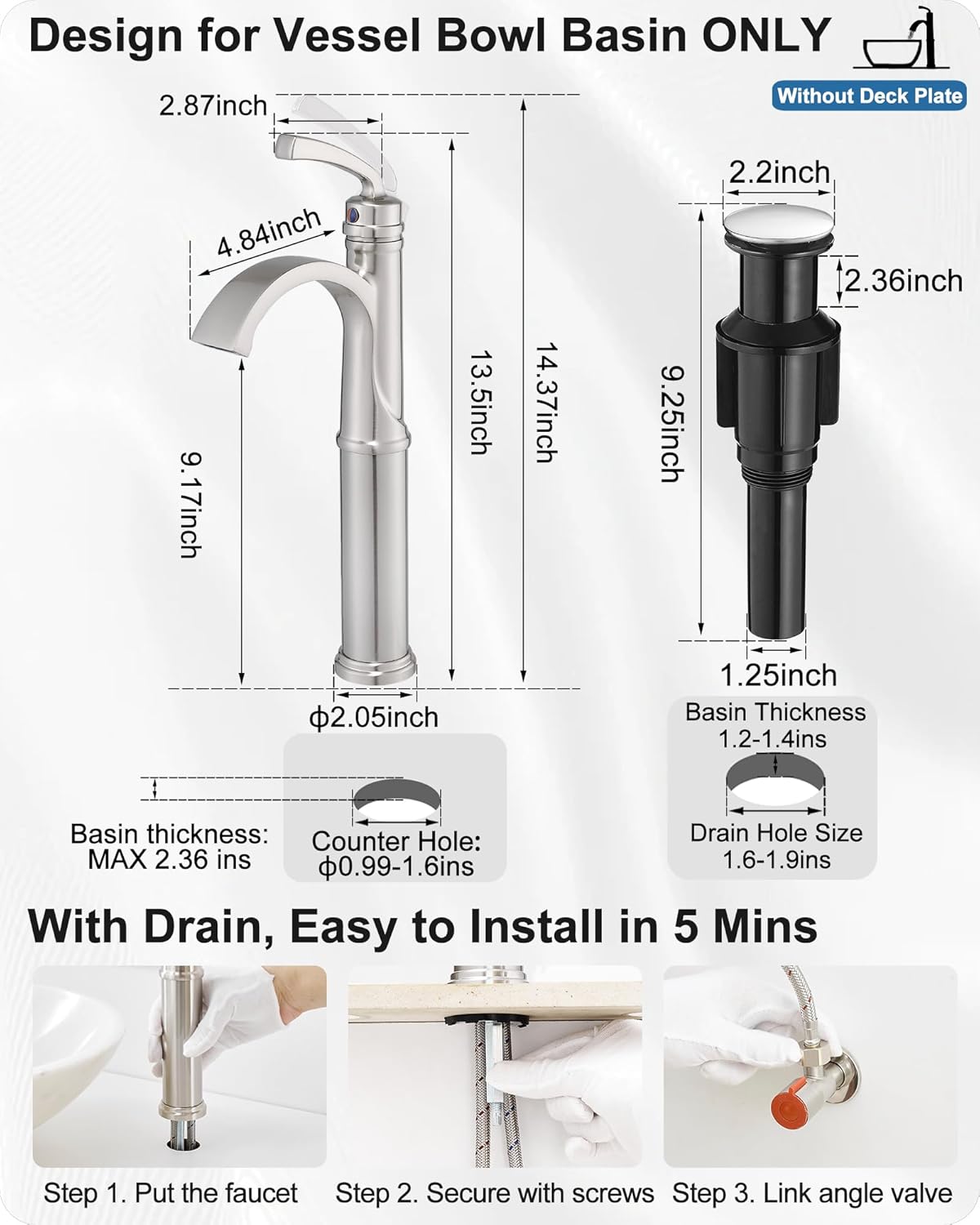| Style Name | Brushed Nickel Vessel Faucet with 3 Hole Faucet Set |