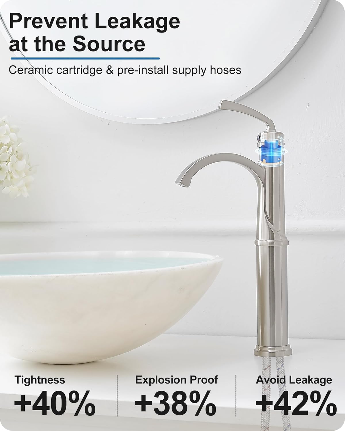 Brushed Nickel Vessel Faucet with 3 Hole Faucet Set