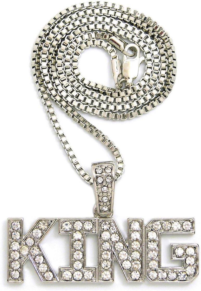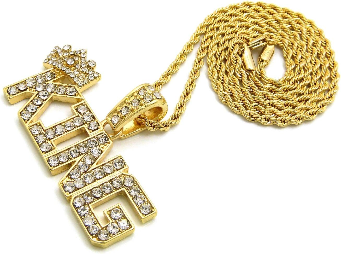 CBC Crown Large King with Crown Pendant 18"/20"/24" Box, Cuban, or Rope Chain Necklace in Gold or Silver TOne