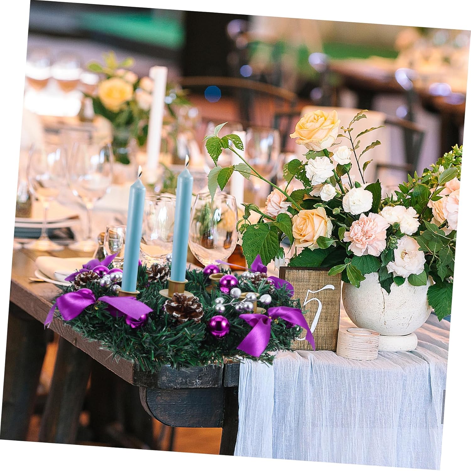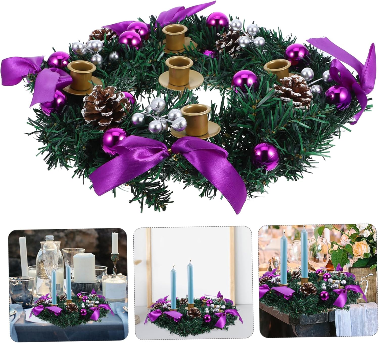Package List 1 x Christmas advent wreath Features -Size:30.00X30.00X8.00cm/11.79X11.79X3.14in festive wreath candle ring -Stable and secure: the advent candles ring holder features a sturdy base that ensures the candles remain stable and secure, providing peace of mind christmas centerpiece decoration -Color:Multi christmas candle stand -Effortless setup: decorating with the artificial christmas wreath is simple; just place it on your tabletop for an instant festive touch christmas season candle holder -Charming design: the pinecone candlestick boasts a charming design that brings a warm and festive feel to your home during the holiday season advent season candle holder -Material:PVC, iron advent wreath candlestick -Multipurpose: this christmas wreath candles centerpiece can be used for christmas, festive celebrations, and even as a wedding centerpiece, making it highly versatile rustic christmas candle ring -Material: crafted from Plastic and iron materials, the christmas centerpiece decoration is built to last and is easy to maintain advent wreath candle plateGoods Descriptionadvent wreath ring candle holder The artificial wreath, adorned with red berries and pinecones, complements any Christmas decor.pine candle ring This decorative piece is designed to bring a touch of elegance to your home.xmas tabletop decoration Enhance your Christmas celebrations with the Advent Wreath candles Holder featuring 5 candles cups.christmas wreath advent ring Position it on a tabletop or as part of your holiday centerpiece.christmas advent candle stand Light the candles to mark each week of Advent, creating a meaningful and beautiful tradition
