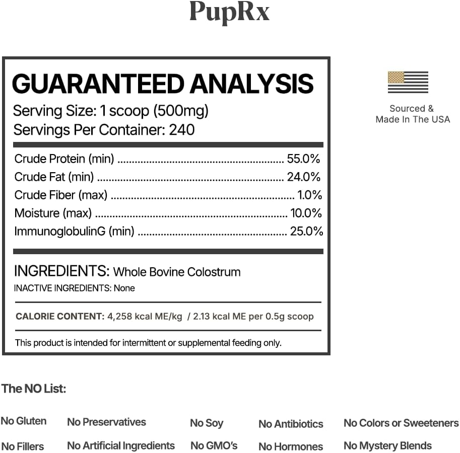 | Active Ingredients | Bovine Colostrum (Cow) |