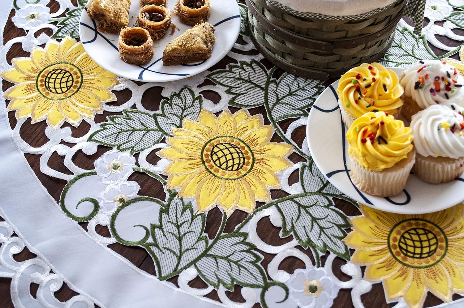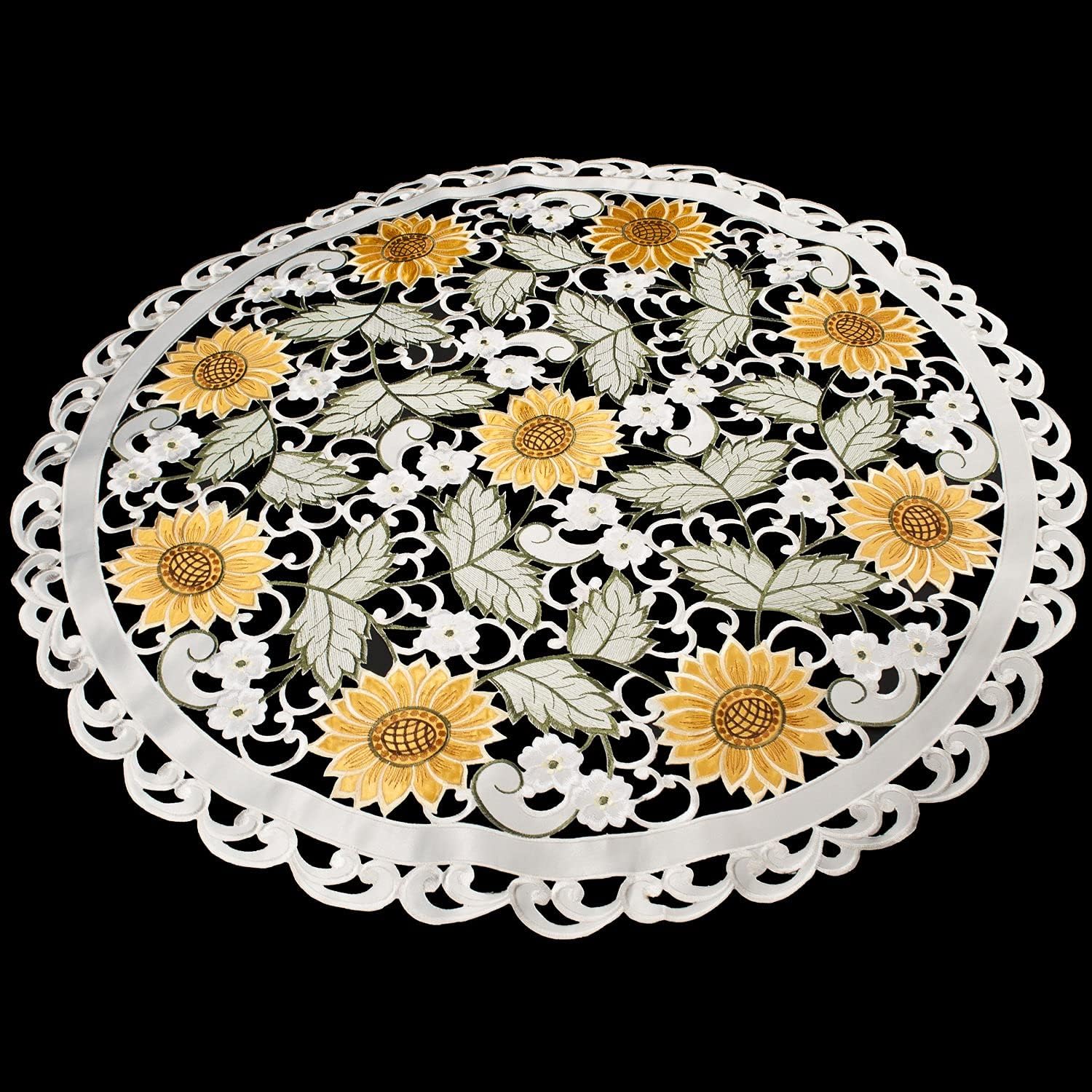 Add a touch of sunshine to your home decor with our Sunflower Classic 33" round doily. These beautifully crafted pieces are designed to bring warmth and elegance to any room. Featuring vibrant sunflower patterns, they are perfect for brightening up your dining table, coffee table, or any surface that could use a splash of color. Made from high-quality materials, these runners and doilies are both durable and stylish, making them a fantastic addition to your home decor collection.