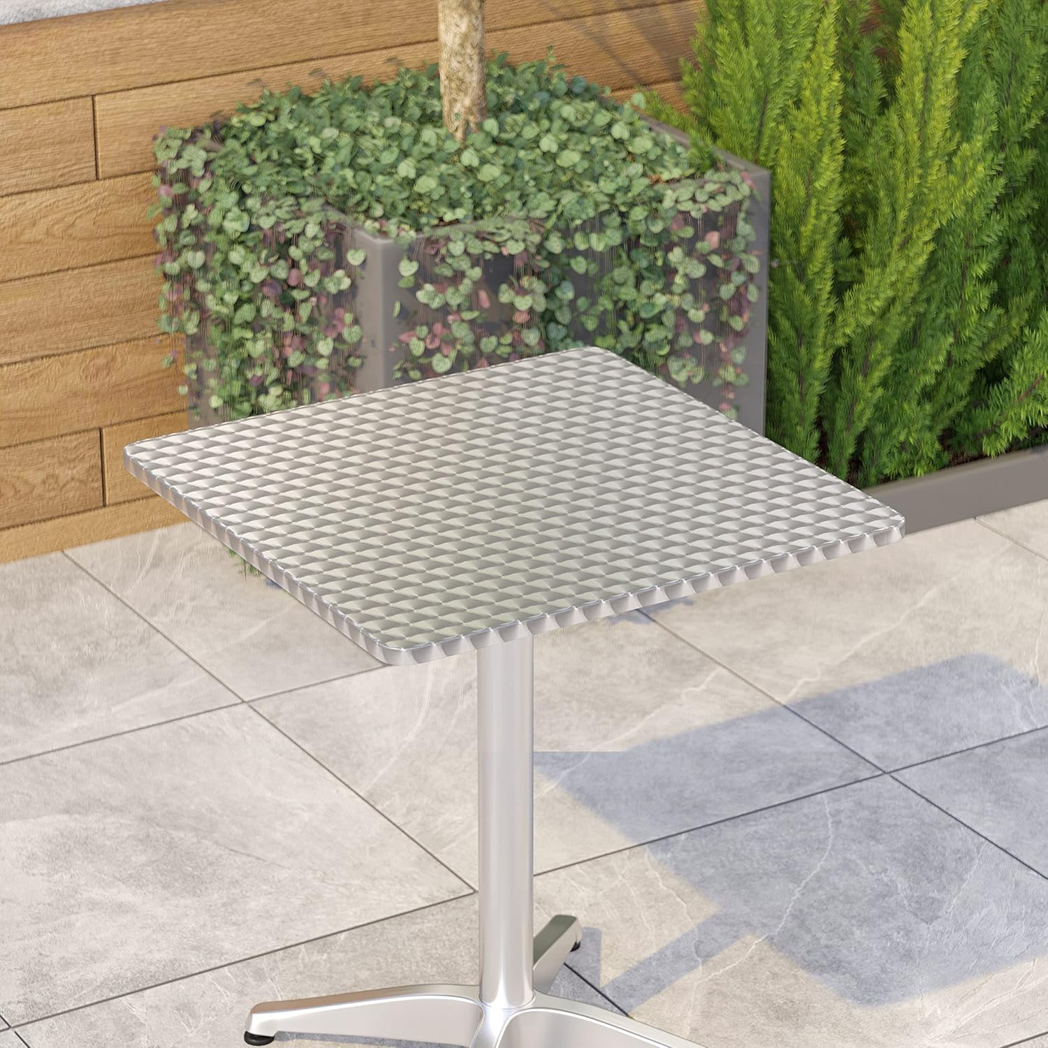 Whether adding some much needed real estate to hold drinks and snacks on the patio at home or a place for patrons to relax, have a meal and great conversation, this aluminum table with base can help create the perfect relaxing or entertainment environment. The designer style stainless steel table top features a smooth surface for keeping items level. The column and base are constructed of lightweight aluminum material. The table was designed for all-weather use making it a great option for indoor and outdoor settings. For longevity, care should be taken to protect from long periods of wet weather. This metal table will enhance the look of your bistro, cafe, restaurant, hotel or home patio space.