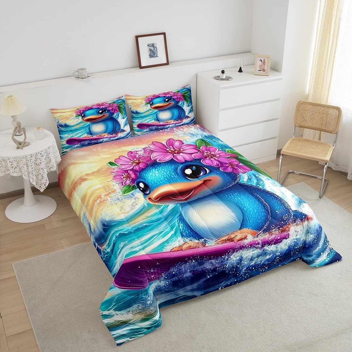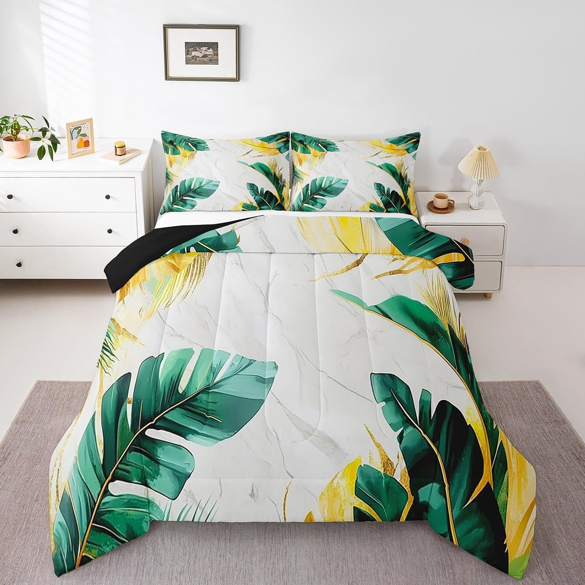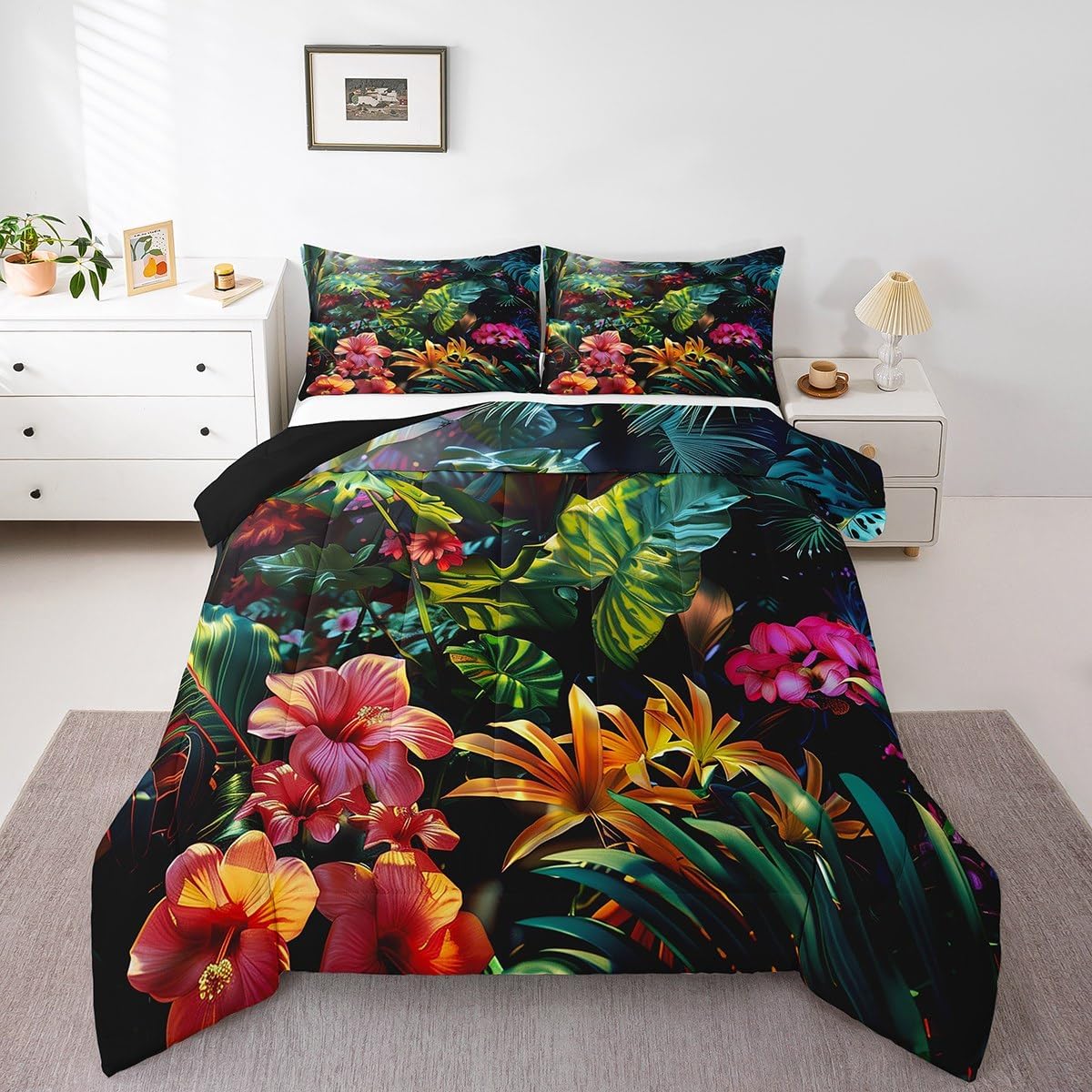 Welcome to our store We have specialized in home textile for many years:We are contribute to provide good customer service and products Size Information Toddler size: 1 Comforter 42"W x 58"L and 1 Quilted Pillowcase 30"W x 20"L Twin size: 1 Comforter 68"W x 90"L and 1 Quilted Pillowcase 30"W x 20"L Full size: 1 Comforter 79"W x 90"L and 2 Quilted Pillowcases 30"W x 20"L Queen size: 1 Comforter 90"W x 90"L and 2 Quilted Pillowcases 30"W x 20"L King size: 1 Comforter 104"W x 90"L and 2 Quilted Pillowcases 36"W x 20"L Versatility We have many kinds of styles for you to choose: You can easily find a product that suits the style of your room The item is not only good for your bedroom,guest room,living room or Rv,but also a great Present for holidays or anniversaries for people who you love Modern Design The luxury aesthetic comforter set is made by reactive printing and dyeing process:The pattern is clear, the color is lasting and bright, which will not fade after repeated washing Personalized As a manufacturer of digital printed home textiles,we follow current trends and bring you the latest and stylish home textile products The item will make the room decorated in exquisite taste Our Wish We sincerely hope you'll love the bed set