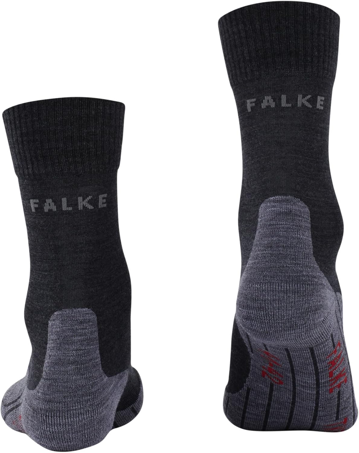 -Premium Hiking Socks: 1 Pair of trekking socks with thin cushion for max comfort while camping, hunting or on a hike; Balanced crew length sock for women and teenage girls of any experience level -Anti Blister: These calf length hiking socks are made with 3 layers to wick away moisture and prevent getting blisters from sweaty feet; Flat seams in toe and heel reduce friction and pressure points -Quality Comfortable Design: We blend insulating wool with durable synthetic fibers to make a soft and breathable trail sock; Machine wash in cold water to retain shape and color; Do not tumble dry Thanks to their light cushioning and merino wool mix, these TK5 hiking socks offer great shoe contact and superior thermal insulation on city trips or during leisure activities. Rapid moisture wicking and the optimised shape guarantee perfect temperature regulation and superior comfort. ABOUT THE BRAND: FALKE is a family-run premium German brand, with a long experience in manufacturing modern clothing accessories designed to match the lifestyle, the personal culture and the needs of each individual. Since 1895 they have stood for fashionable clothing made from high-quality materials, finished with handcrafted perfection and an eye for detail. Through the influence of new ideas and the long experience our garments arise in extraordinary quality and contemporary design. FALKE is dedicated to developing stylish fashion for modern people, in the highest quality and with the demand for perfection. We have been working on this day after day, full of passion - for 125 years.