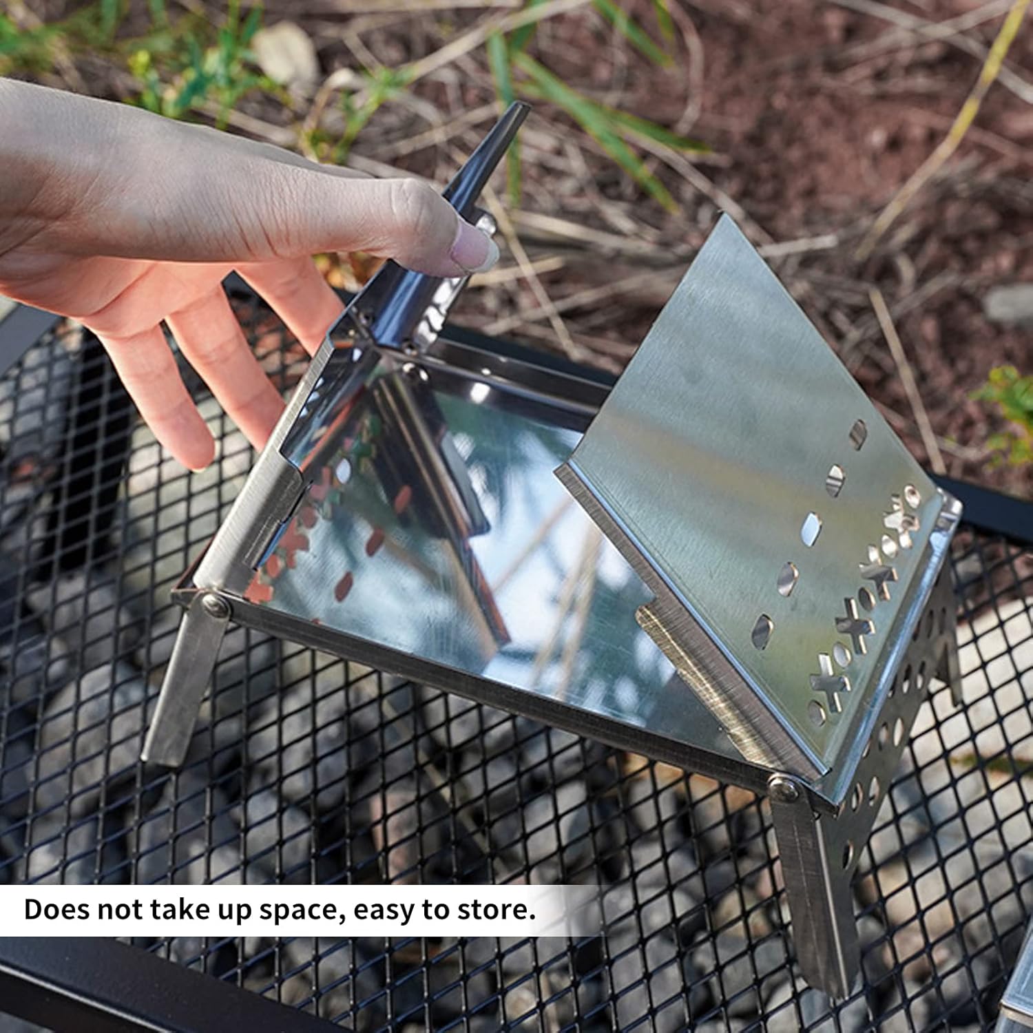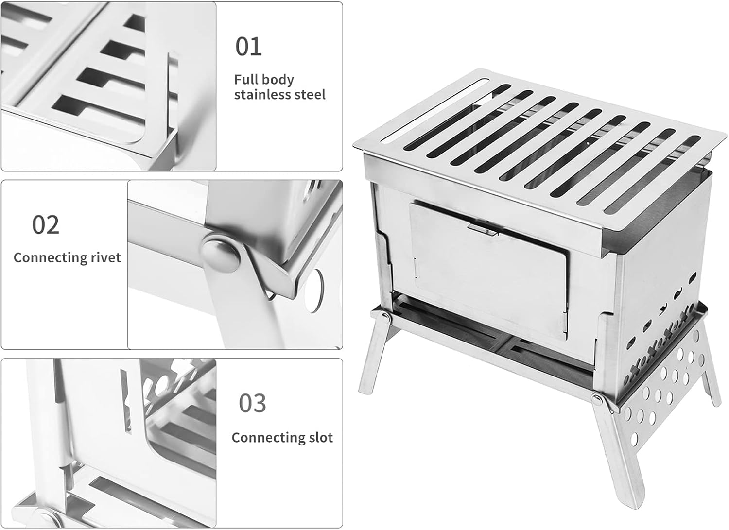 Specification: Item Type: Folding Wood Burning Stufo Weight: 935g/33oz Material: stainless steel. FURNACE STRUCTURE: Split type Folding Number: 2-3 People Size: 180 x 135 x 190mm/7.1 x 5.3 x 8.5in Package List: 1 x Stove Cardom plaqu1 x Fixed NET
