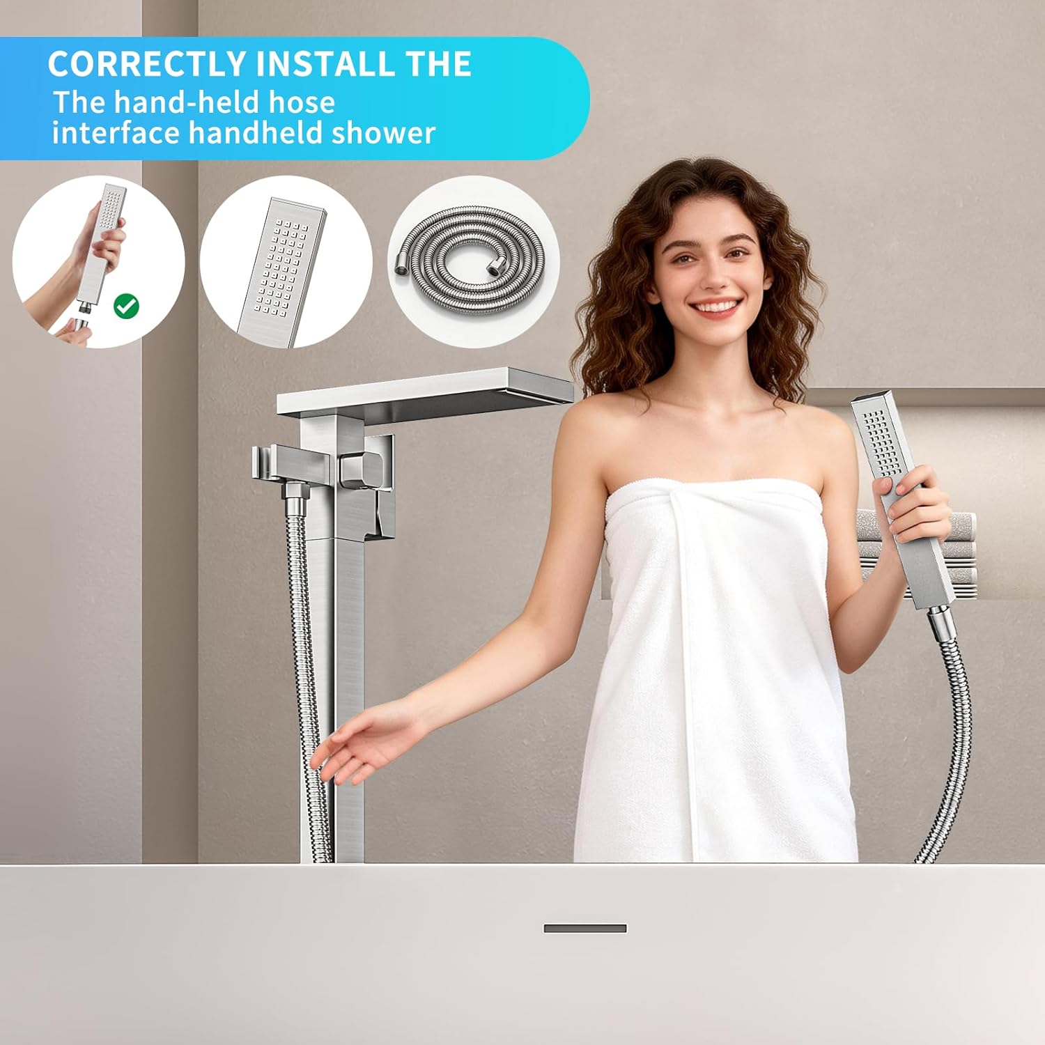 | Included Components | Bathtub Faucet,Brass Tube,Handheld Shower with Shower Hose,Hot and Cold Hoses,Base Cover,Mounting Hardware, Installation Instructions |