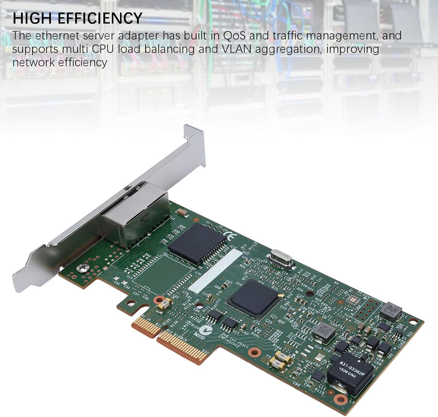 1. HIGH EFFICIENCY: The ethernet server adapter has built in QoS and traffic management, and supports multi CPU load balancing and VLAN aggregation, improving network efficiency 2. LOW POWER CONSUMPTION: The PCIE ethernet server adapter uses innovative energy saving features, including EEE and DMA integration, to reduce power consumption and save energy 3. STABLE AND EFFICIENT: PCIE Gigabit Ethernet server adapter with scalable iSCSI performance, efficient connectivity, providing stable connectivity 4. VIRTUAL PORTS: The PCIE Ethernet server adapter has flexible I/O virtualization, supports port partitioning and quality of service, and has up to 32 virtual ports 5. FAST AND EFFICIENT: Gigabit network card adopts high performance non bridge design and PCI Express Gen 2.1 5GT/s to ensure fast rate, you can use with confidence Spec: Item Type: Ethernet Server Adapter Applicable Network Type: Gigabit Ethernet Rate: 10, 100, 1000Mbps Main Chip: For I350 Bus Type: PCI E 4x Network Standards: IEEE 802.1p, IEEE 802.1Q, IEEE 802.3ac, IEEE 802.3az, IEEE 802.3x, IEEE 802.3z Number of Network Ports: 2 Network Interface Type: RJ45 Bus Speed: 5 GT/S Wake On LAN Function: Supported Duplex: Full Duplex or Half Duplex Adaptive Application: For Servers Supported Operating Systems: For wins10, 8.1, 8; for Server2019, 2016, 2012, 2008, 2003; for Linux How to Use: Plug and play PackageList: 1 x Network Card
