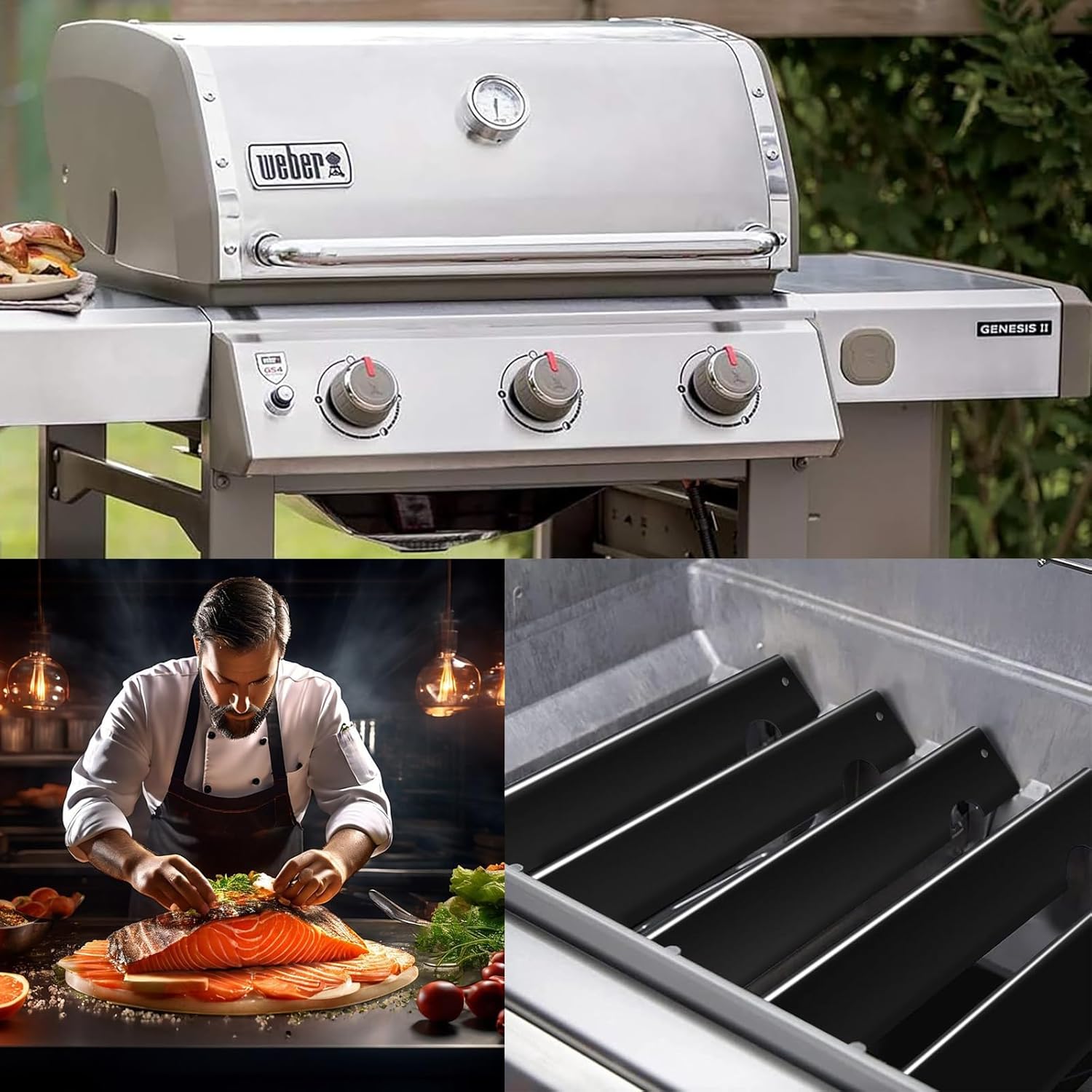 Product Description Grill Replacement Parts for Weber Genesis II 300 Series Upgrade your Weber Genesis II grill with our high-quality replacement parts, designed to restore your grill’s performance and extend its lifespan. This set includes Flavorizer Bars, Heat Deflectors, and Burner Tubes, all crafted to meet the exact specifications of your Weber Genesis II 300 series grill. Key Features: Perfect Fit for Weber Genesis II 300 Series: Compatible with Weber Genesis II E/S/SE-310, 315, 325, 330, 335, and LX 340 models (2017 and newer). Durable Porcelain Enamel Construction: Made from high-quality porcelain enamel, these parts are built to withstand high temperatures, resist rust, and ensure long-lasting performance. Enhanced Heat Distribution: The Flavorizer Bars and Heat Deflectors are designed to distribute heat evenly, improving cooking efficiency and enhancing the flavor of your food. Easy Installation: Direct replacement for your original parts—no modifications needed. Simply remove the old parts and install the new ones in just a few minutes. Easy to Clean: The smooth, non-stick surface makes cleaning a breeze. After use, simply wash with soapy water and dry thoroughly. Dimensions: Flavorizer Bars: 17 1/8" (L) x 2 1/8" (H) x 3" (W) Heat Deflectors: 12 1/2" (L) x 4 1/4" (W) Burner Tubes: 19.5" (L) Compatibility: Fits Weber Genesis II 300 Series Models: E-310, S-310, SE-310, E-315, S-315, SE-315, E-325, E-330, E-335, S-335, SE-335, LX E/S/CSS/CSE-340, and more. Compatible with Original Weber Part Numbers: Flavorizer Bars: 66795, 66032, 67095, 90235 Heat Deflectors: 66040, 66685, W38A Important Note: To ensure you choose the correct size for your grill, we highly recommend double-checking your original parts and comparing them with our dimensions before purchasing. What’s Included: 5 x Porcelain Enamel Flavorizer Bars 3 x Porcelain Enamel Heat Deflectors 3 x Burner Tubes Why Choose Us? Restore Your Grill’s Performance: Bring your Weber Genesis II grill back to like-new condition. Cost-Effective Solution: A budget-friendly alternative to OEM parts without compromising quality. Trusted Compatibility: Designed to match the exact specifications of your Weber grill. Ideal For: Grill enthusiasts looking to maintain or upgrade their Weber Genesis II 300 series grills. Anyone seeking reliable, high-performance replacement parts for their gas grill. Optimized for Clarity and SEO: Clear, concise language with bullet points for easy readability. Includes high-search-volume keywords like “Weber Genesis II replacement parts,” “Flavorizer Bars,” and “Heat Deflectors.” Highlights compatibility, durability, and ease of use to attract potential buyers. This product description is designed to maximize clarity, appeal, and search engine visibility, helping to drive conversions on Amazon.
