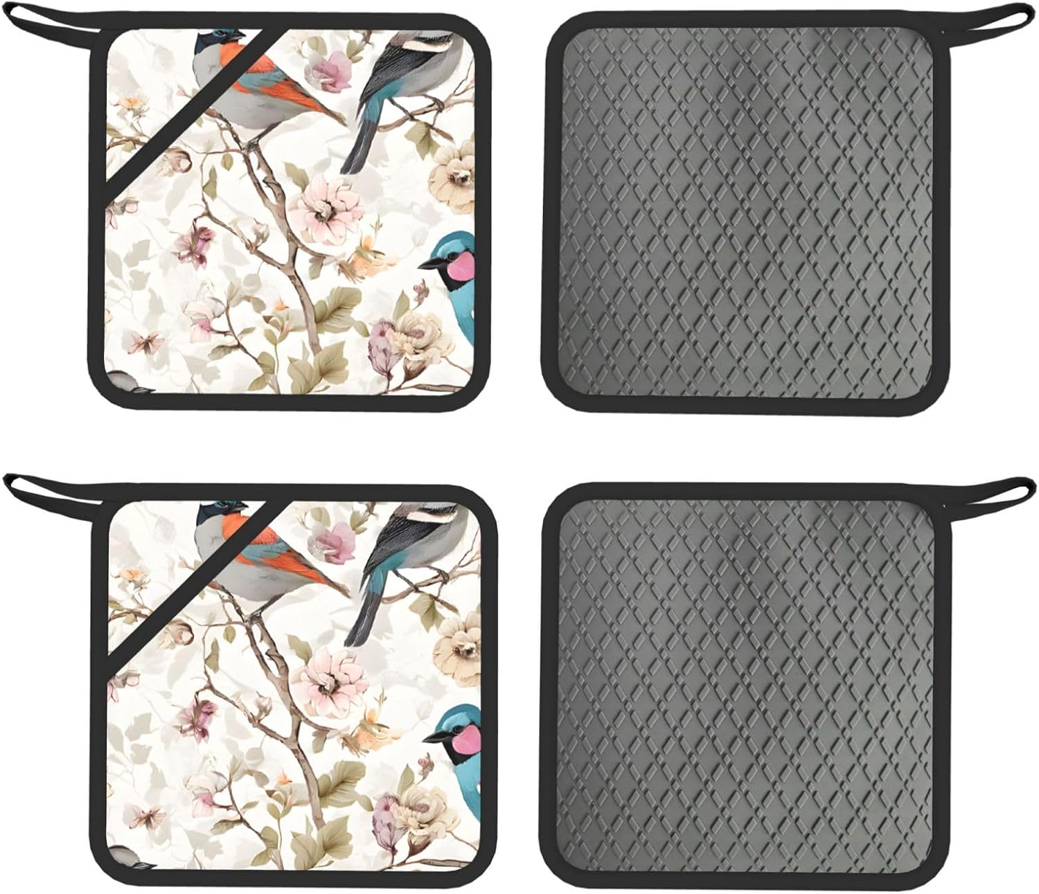 Upgrade your kitchen essentials with this oven mitts and pot holders set, designed for safe and comfortable handling of hot cookware. The set includes 2 heat-resistant oven mitts and 2 pot holders with pockets, making it a practical choice for daily cooking, baking, grilling, and microwave use.Crafted from high-quality polyester with thick insulated padding, these kitchen gloves deliver reliable heat protection up to 260°C. The soft quilted lining ensures comfort and flexibility, while the silicone palm design enhances grip and control when handling hot pots, pans, and trays.The non-slip silicone surface provides added stability, giving you confidence when moving hot cookware. Waterproof inner and outer layers make cleaning simple—just wipe clean or hand wash and air dry for easy care.Each piece features a convenient hanging loop for organized storage and quick access in your kitchen. Stylish and functional, this oven mitts set also makes a thoughtful gift for family and friends on holidays, housewarmings, and special occasions.