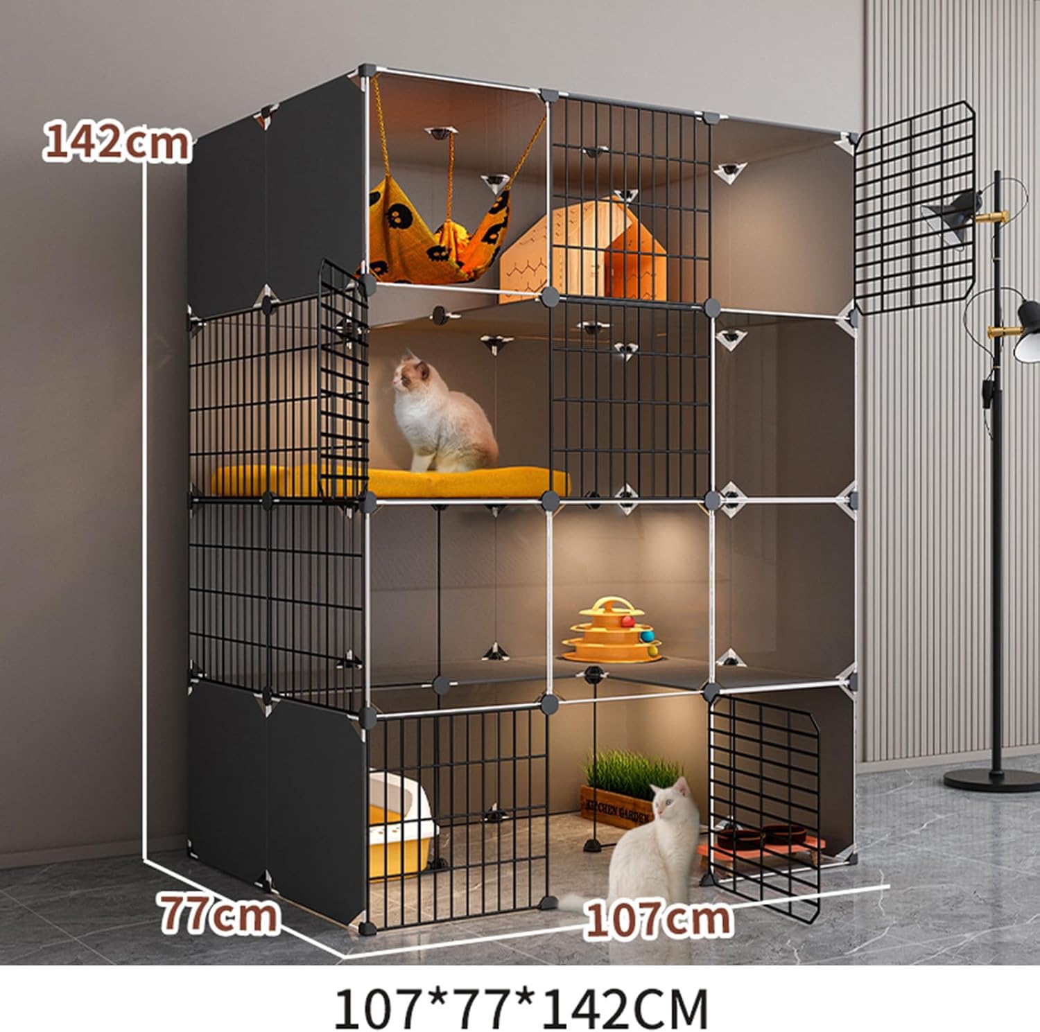 Discover the perfect solution for your feline friends with our versatile DIY Cat Cage. Designed to provide a safe and comfortable environment, this cat cage features customizable metal panels that can be easily assembled into various shapes, sizes, and heights, allowing you to create the ideal space tailored to your home and your cat's needs.**Product Name:** DIY Cat Cage**Color:** Black**Material:** Durable metal and ABS plastic**What’s Included:**- Cat Cage *1This cat cage is perfect for indoor use, providing a secure area for your pets to play, relax, and explore. It’s ideal for multi-cat households, offering each cat their own space while keeping them safe and contained. The sleek black design seamlessly blends with any home decor, making it a stylish addition to your living space.Please note that our package includes only one set of the cat cage without accessories. If you require additional accessories, feel free to reach out to us for assistance!**Important Information:**1. While we strive to display accurate colors, variations may occur due to different monitor settings.2. Please allow for a manual measurement error of 1-3 cm in the product size.3. For any inquiries, our customer service team is here to help. Contact us via email, and we will respond within 12 hours.Enhance your pet's living environment with our DIY Cat Cage and give them the space they deserve!