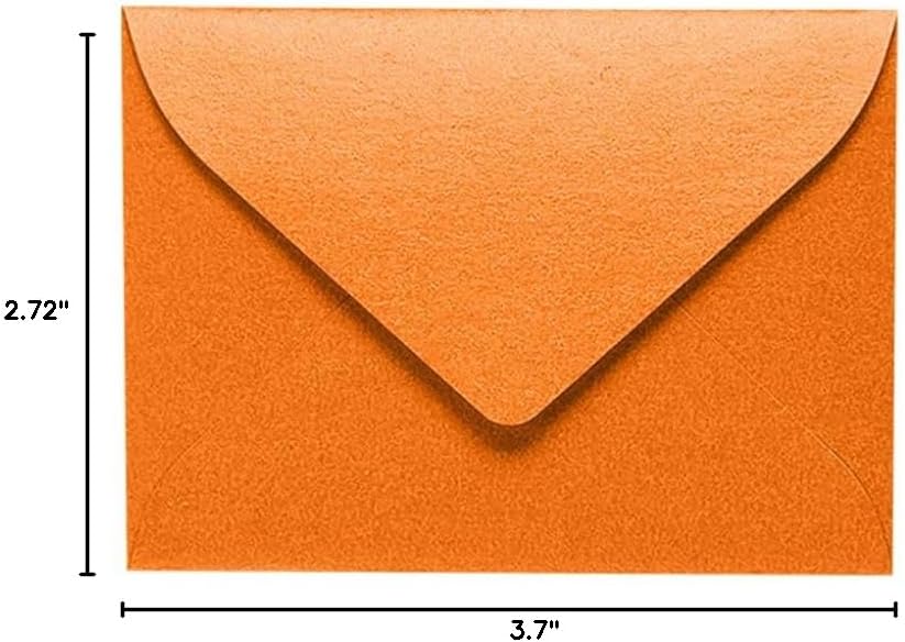 Premium, small #17 Mini Envelopes (2 11/16" x 3 11/16”) made with quality paper and secure, moistenable flap closure for holding gift cards, small notecards, organizing small items, carrying business cards and presenting place cards. Flame Metallic is a shimmery, red-orange colored envelope with a smooth finish. This multifunctional envelope is designed like a standard-sized envelope, but a miniature version with a stylish, contour flap.