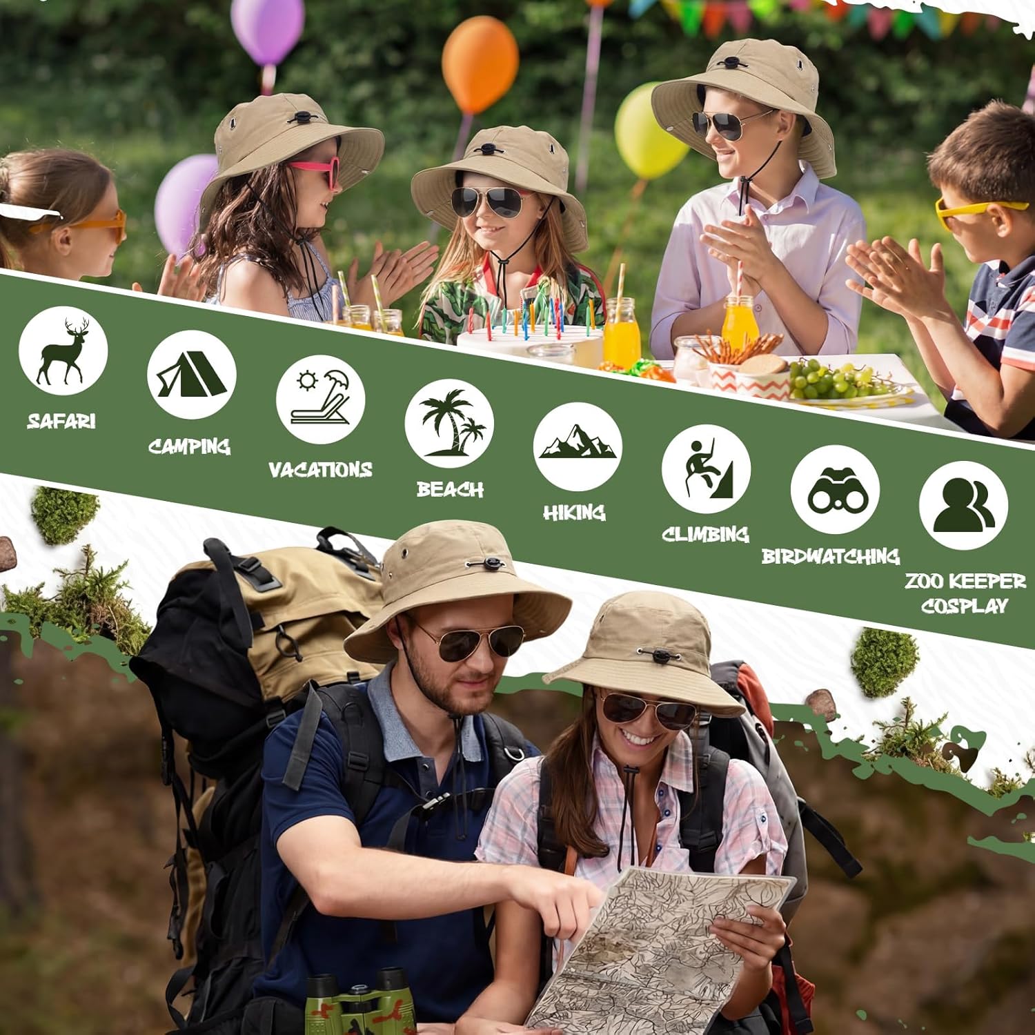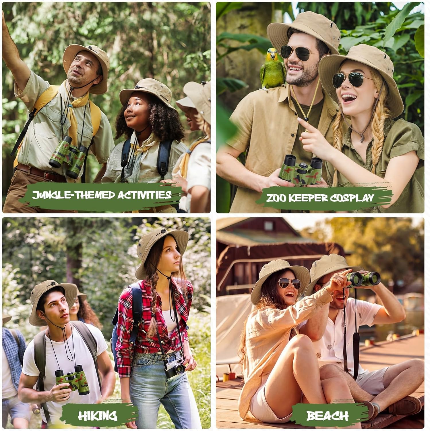 Features: Easy to match: Whether hosting a large rave party or planning a jungle themed event, all pieces offer consistent quality and versatile style. Ideal for group events: This hunting themed accessory set is ideal for group events such as themed parties, cosplay gatherings, or event gifts, ensuring everyone can join the adventure. Specifications: Material: 100% polyester cotton, plastic Color: khaki, green Size: Green plastic binoculars: 4.33 x 4.13 x 1.57in / 11 x 10.5 x 4 cm Package includes: 40 x Khaki cotton hats 40 x Green plastic binoculars 40 x Sunglasses Notes: Manual measurement, please allow slight errors on size. The color may exist a slight difference due to different screen displays