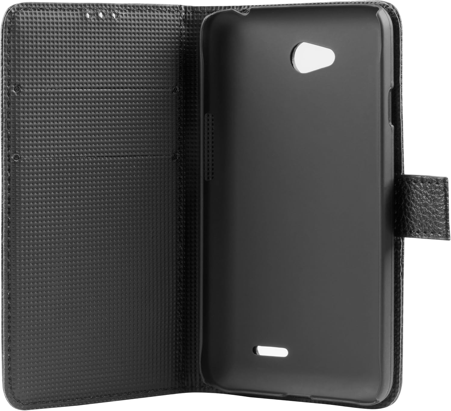 mumbi book-style case compatible with LG L70. Timeless and simple design combined with the processing of high-quality materials make the LG L70 case from mumbi the perfect LG L70 smartphone accessory. Since the LG L70 mobile phone case has been tested and optimised on the original device, a 100% perfect fit of the LG L70 case is . The LG L70 faux leather case is made of high-quality and robust faux leather, which protects the LG L70 case safely from scratches and damage. In order not to artificially enlarge the LG L70 book-style case, we have deliberately dispensed with a belt clip or a loop on the LG L70 flip case. Thanks to the practical magnetic closure on the LG L70 case, opening and closing is child's play. Case for L70: with compartments for cards, driving licence etc. and practical stand function. Case L70: impresses with its simple design and high wearing comfort without sacrificing the usability. Case L70: perfect hold thanks to the precisely fitting plastic shell. LG L70 case: high-quality faux leather protects against scratches and damage. LG L70 case Black: completely sewn and not glued, L70 case foldable. Mobile phone case L70: thanks to the practical magnetic closure, the L70 wallet case can be easily opened and closed. Thanks to the unobtrusive design, the L70 mobile phone case is perfect as a gift. Whether as a birthday gift or Christmas gift, whether as a gift for women or gift for men, with the mumbi case for the LG L70 you are on the safe side. Mobile phone case for L70 case black mumbi - German manufacturer of high-quality bags with more than 10 years of experience.