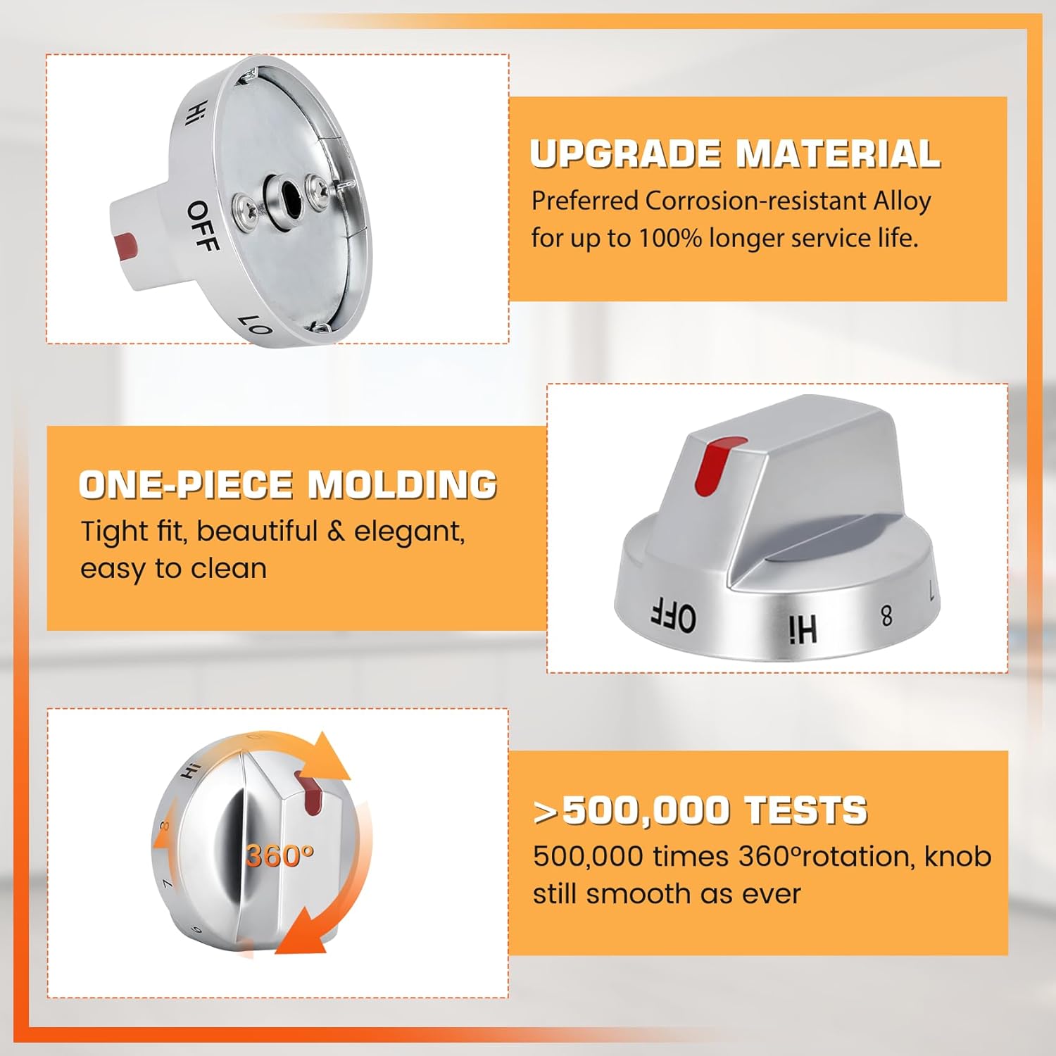 • 【Product Upgrade】: NE63t8111ss replacement knobs is made of PBI engineering plastic as a whole, which is more heat-resistant, wear-resistant, won't burn your hands and other features, the back is made of metal stainless steel, overall reinforcement, not easy to deform. With a thick solid center ring, after 50,000 times of rotation experiment, the knob is smooth as usual.