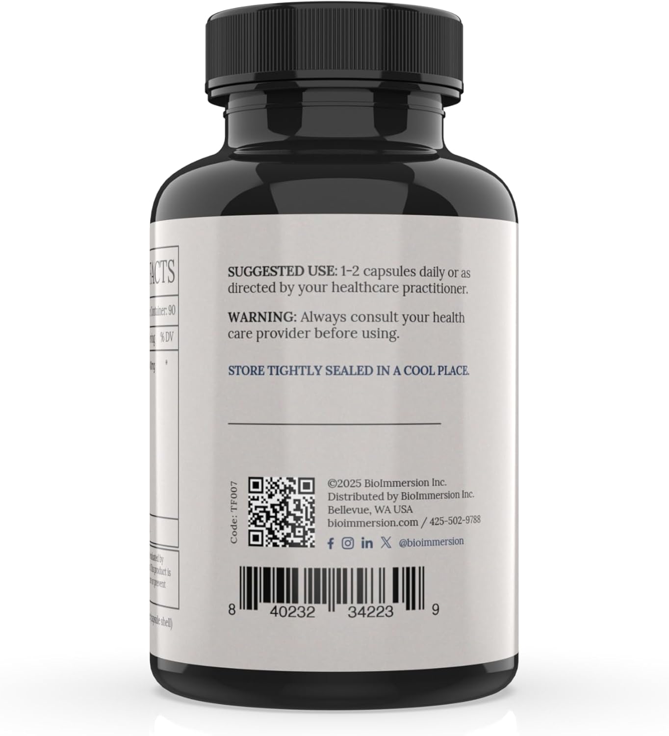 BioImmersion Garlic is raw, organic odorless garlic pills in its most natural, high actives pure and ultra potent state. Each vegan capsule delivers 4 to 5 whole cloves of garlic, with exceptionally potent 26,800 ppm Allium sativum L. Alliin (11 mg, Allicin potential 5mg) garlic extract supplement equal to 400 mg of freeze dried organic garlic bulb. Encapsulated in only quick release cellulose and water, with no fillers, flowing agents or excipients of any kind, Biolmmersion's Organic Odorless Garlic Extract Supplement offers support for heart, immunity, gut & circulatory health through natural garlic extract supplementation. Garlic is also a great source of antioxidants. Containing only QAI certified raw organic odorless garlic sublimated through advanced technology, BioImmersion offers garlic extract with the highest phytonutrient potential with exceptional potency, almost three times the industry standard. Garlic has been used for centuries by ancient civilizations and over the last thirty years this has been our focus. Sourcing garlic cloves with exceptional potential, along with utilizing the most advanced air/belt drying and manufacturing technologies enable us to provide exceptionally potent garlic. It is a must have product to have on your shelf. Learn more about its many usages.