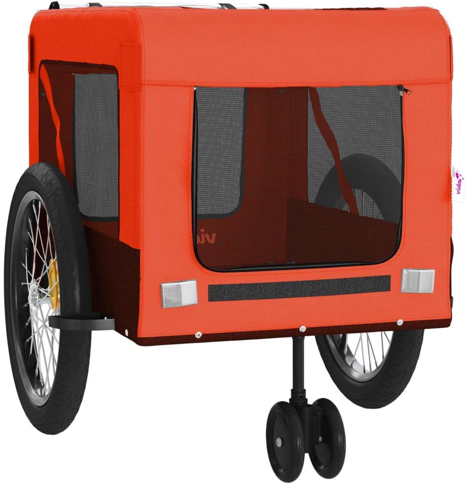 Take your furry friend along for every cycling adventure with our premium Pet Bike Trailer. Designed specifically for small breeds, this trailer combines safety, comfort, and portability to ensure your pet enjoys the journey as much as you do.The trailer is constructed from heavy-duty oxford fabric and a reinforced iron frame, capable of supporting pets up to 66.1 lbs. Its thoughtful design includes ample mesh ventilation, allowing your pet to enjoy the breeze while staying cool and relaxed. Safety is our priority; the integrated reflective strips and included safety flag ensure you remain visible on the road.When not in use, the trailer folds down into a compact size, making it easy to store in tight spaces or transport in your vehicle. Whether you are heading to a local park or running errands around town, this stylish orange and black trailer is the ultimate accessory for active pet owners.