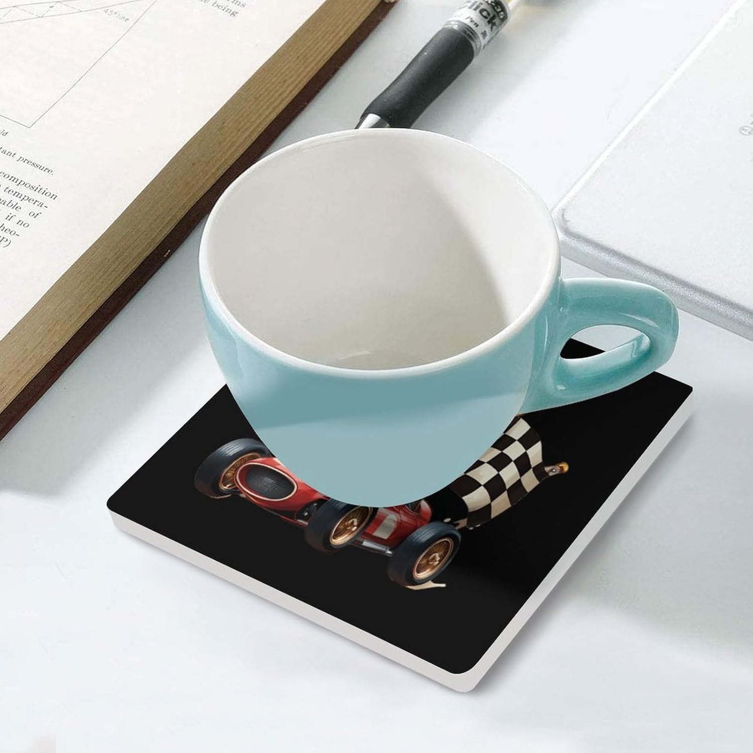 Cute Printed Absorbent Ceramic Coaster for Drinks Funny Coasters with Cork Base Suitable for Kinds of Mugs, Cups, Prevent Tabletop Wear And Scratches, and is Easy to Clean