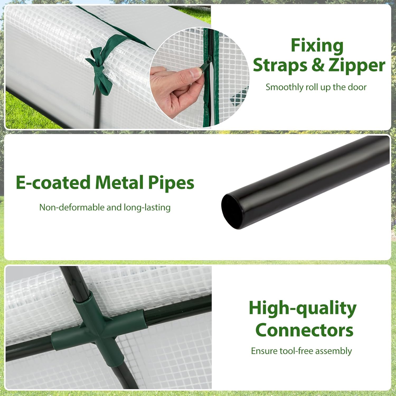Embrace the endless possibilities of gardening with the portable raised garden bed with greenhouse!Specification:Color: White + Green, Natural/GreyMaterial: PE, Electrophoretic Steel, Pine WoodGreenhouse Size: 47”x 22”x 24” (L X W X H)Garden Bed Size: 47”x 24”x 30” (L X W X H)Maximum Weight: 220 lbsGreenhouse Net Weight: 4.5 lbsGarden Bed Net Weight: 18.5 lbsPackage includes:1 x Mini Garden Greenhouse1 x Garden Bed6 x Hook1 x Instruction