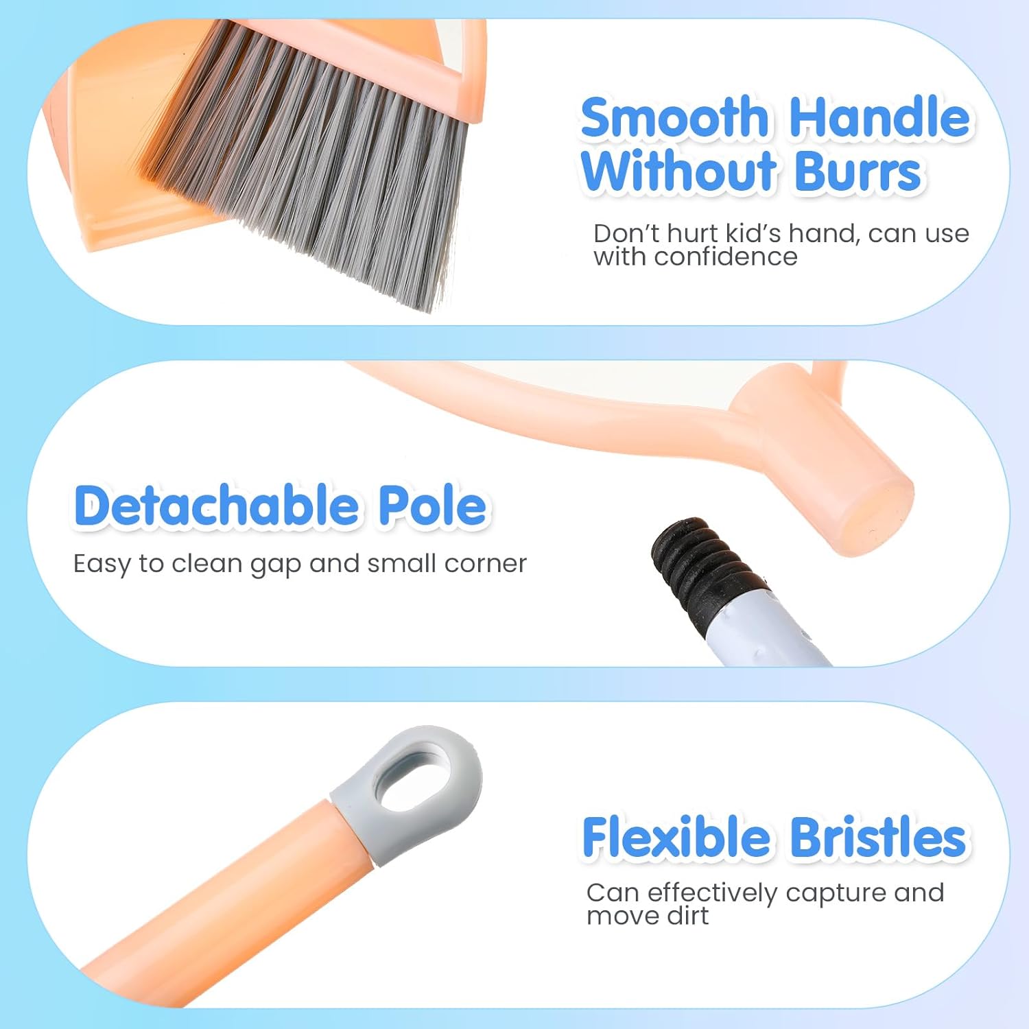 • Quality Material: our mini broom with dustpan for kids are made of PP and nylon, which is safe and non toxic and tasteless; Children's brushes have a long and tough bristles, which are not easy to fall off; It can effectively remove dirt and satisfy your long term use