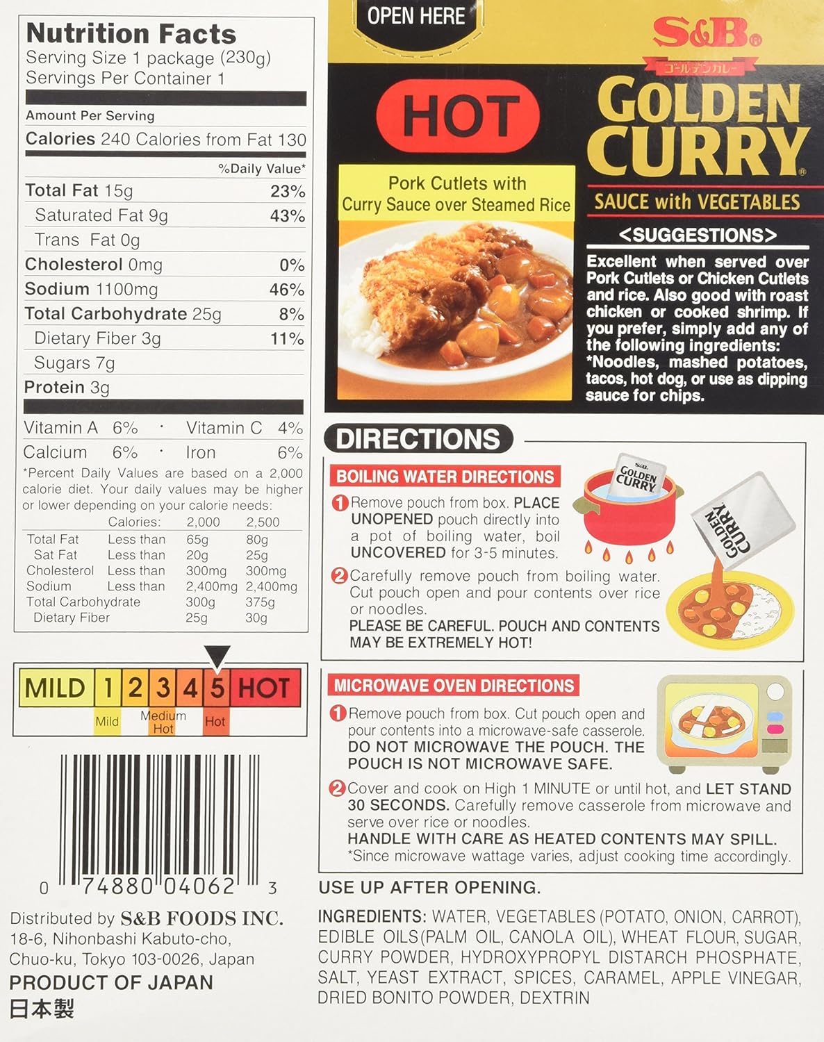 | Set Name | S&B Curry Gold Vegetable Hot |