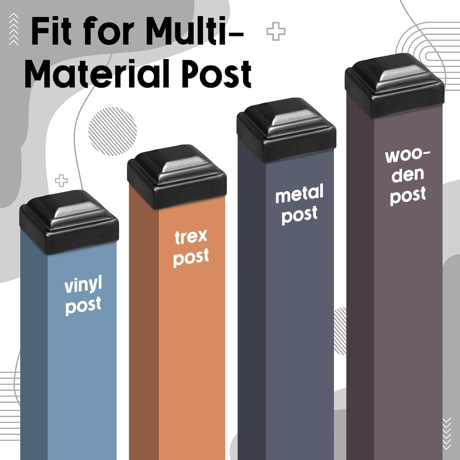 Features: Precisely crafted to fit 2" x 2" square posts, these caps provide a seamless and snug fit, ensuring maximum protection without compromising the aesthetic appeal of your fence Made from pressed steel, these post caps offer enduring durability and strength. Their solid construction promises reliable performance and resilience against environmental wear and tear. Specifications: Material: pressed steel Color: black Size: about 2" x 2" Package includes: 50 x Pressed steel post caps Notes: Manual measurement, please allow slight errors on size. The color may exist a slight difference due to different screen displays.