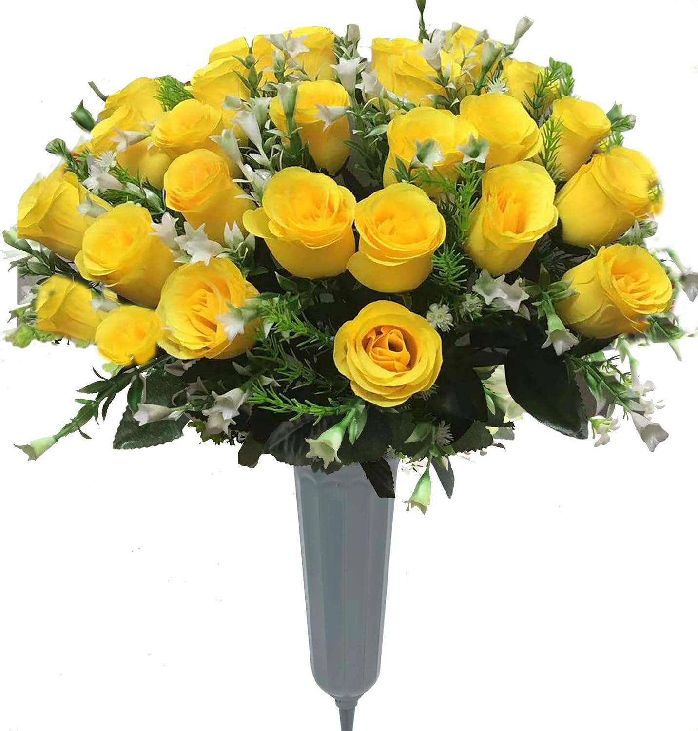 Remembering a loved one keeps them alive in our hearts. Our flowers for the grave fits any vase, regardless of size. All you need is a Styrofoam cone to secure the arrangement in the vase. What’s even better, you can rest easy knowing your dearly departed's bouquet will look fresh near the headstone. The flowers’ colors don’t bleed in various weather conditions. Changing flower arrangements every 2-3 months is advised