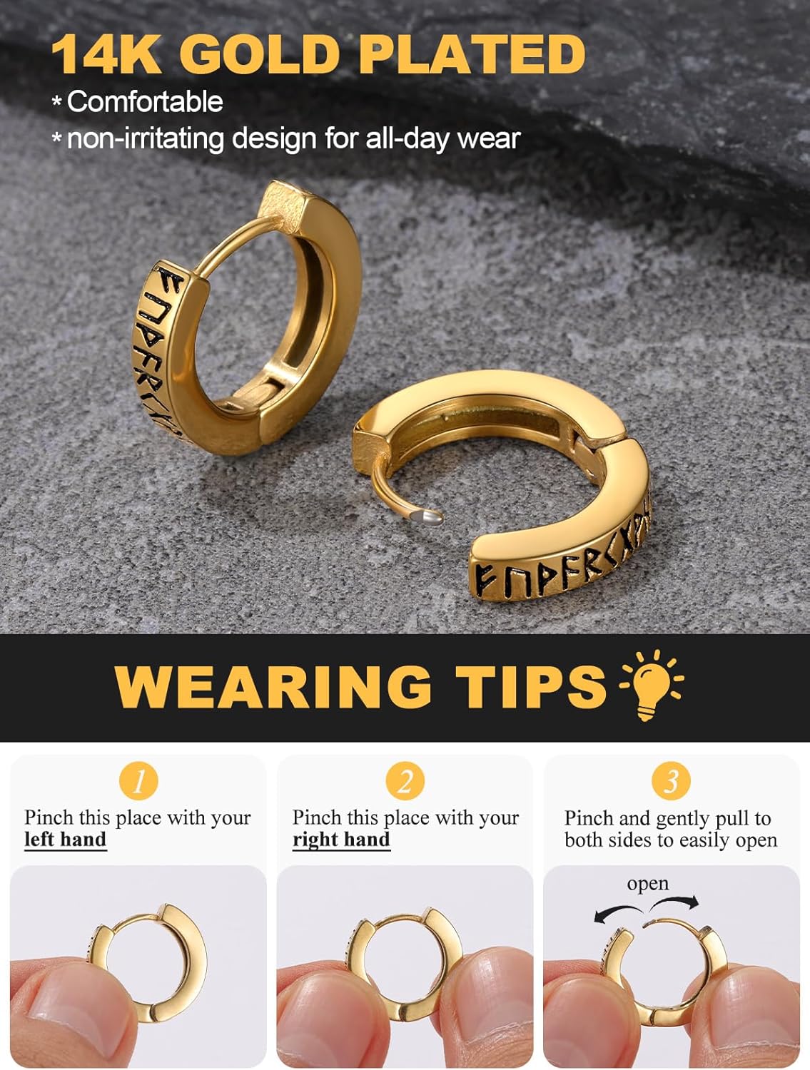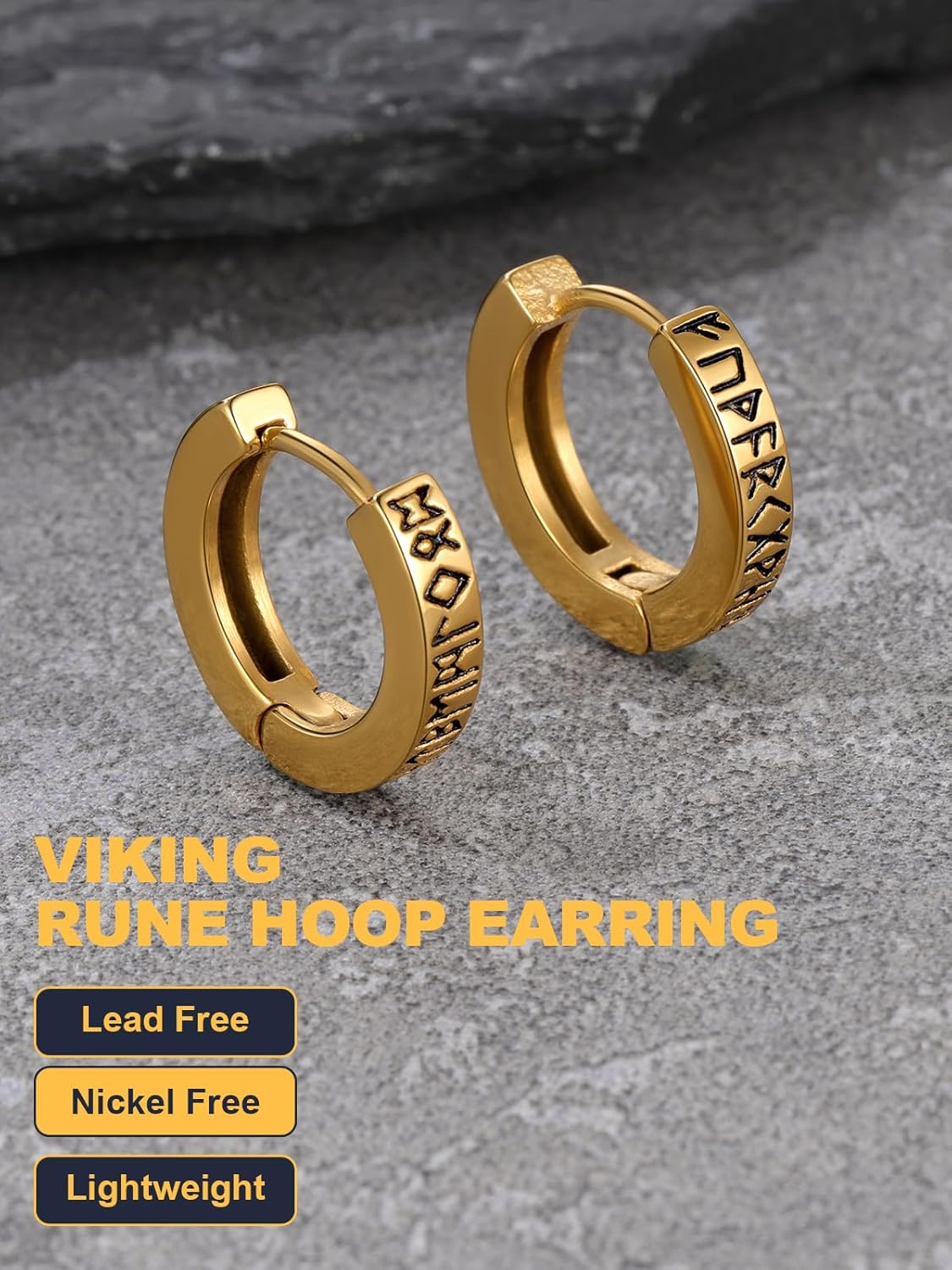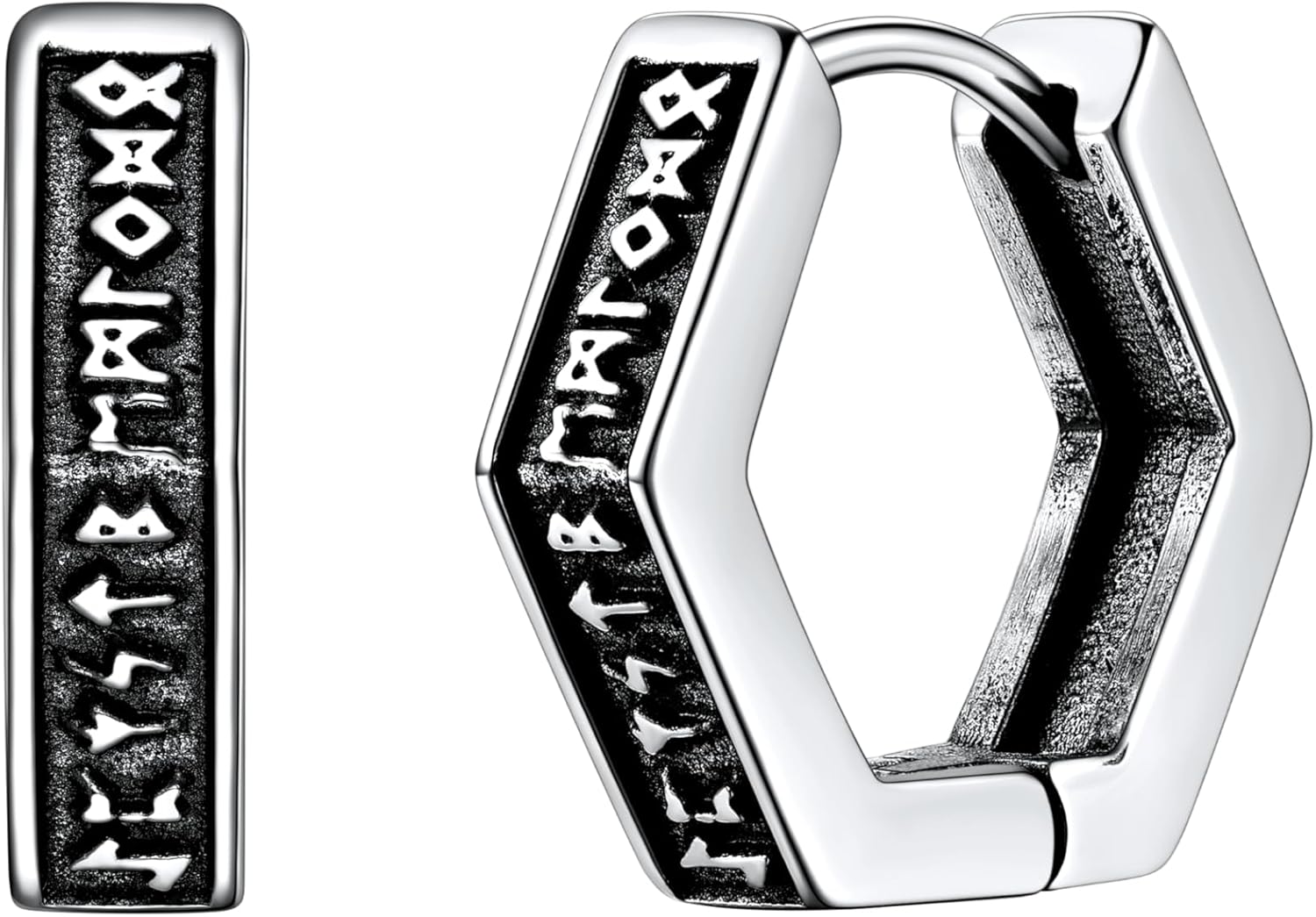 Norse Viking Runes Earring for Women Mens Huggie Hoop Earrings Stainless Steel Hoops Earring Hypoallergenic Perfect for Sensitive Ears.