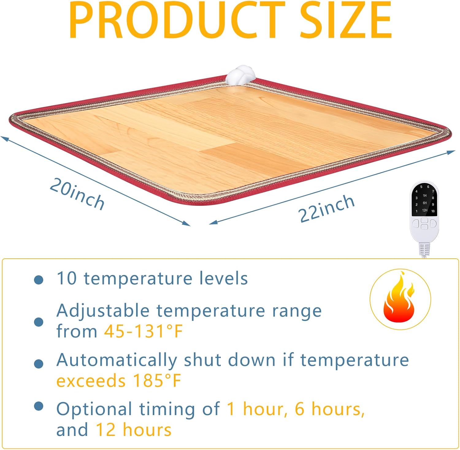 Features: This PVC heated floor mat is simple to use, you need to plug it in, and it'll start heating up right away providing you with a warm floor, it's suitable for most floor types and provides a warm touch. Our heated foot warmer comes in a stylish color, this neutral color can blend with most decor styles and will complement your living or workspace beautifully. Specifications: Material: PVC, rubber Color: as picture shown Size: approx. 21.6 x 19.7 inches/ 55 x 50 cm Package includes: 1 x PVC heated floor mat for foot Notes: When the temperature exceeds 185 degrees Fahrenheit, the heating blanket will automatically close. Manual measurement, please allow slight errors on size. The color may exist a slight difference due to different screen displays.