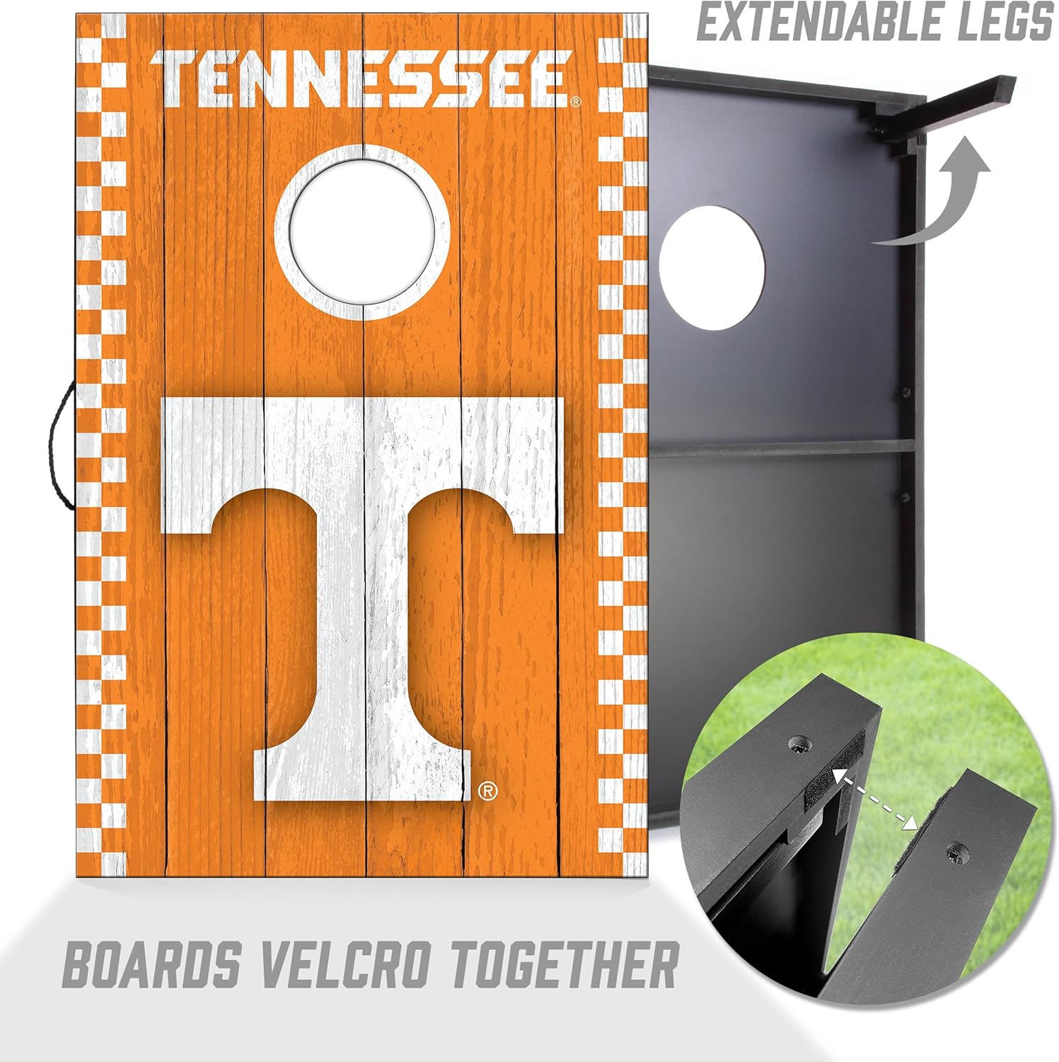 The MDF construction sets this apart from the rest! This cornhole game set wins on quality construction and performance. The compact 2’x3’ all-wood board features striking team graphics printed directly on the surface for long-lasting durability. It’s what every game-day party needs!